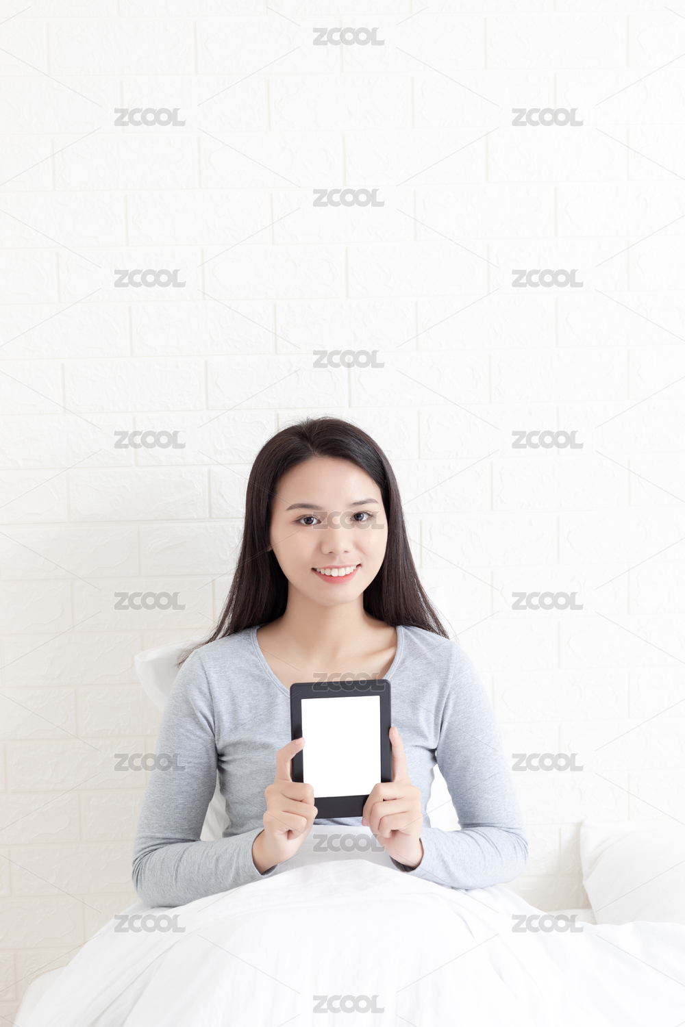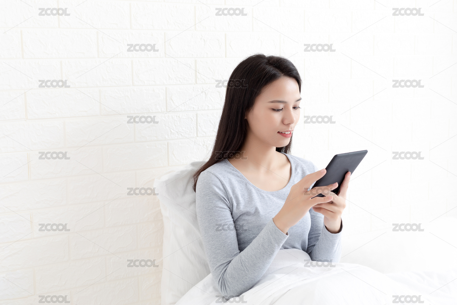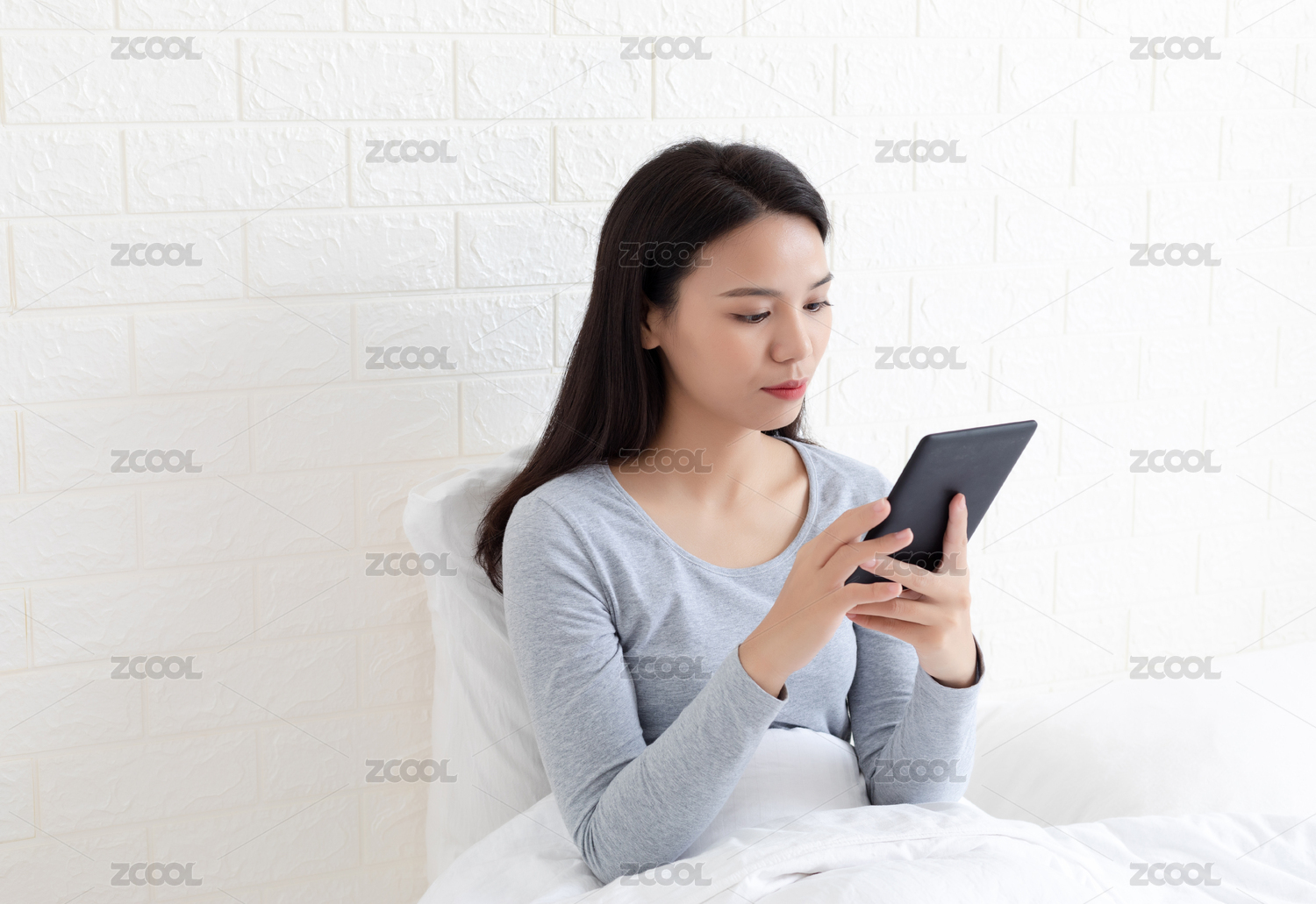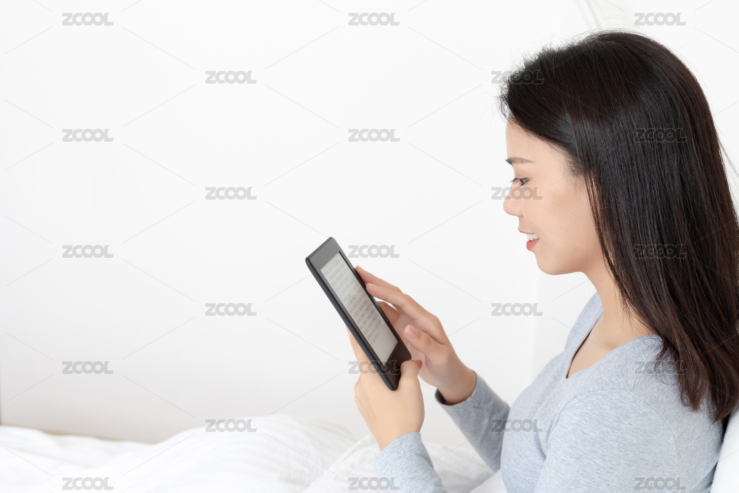 臥室里一名年輕女性在看電子書(shū)