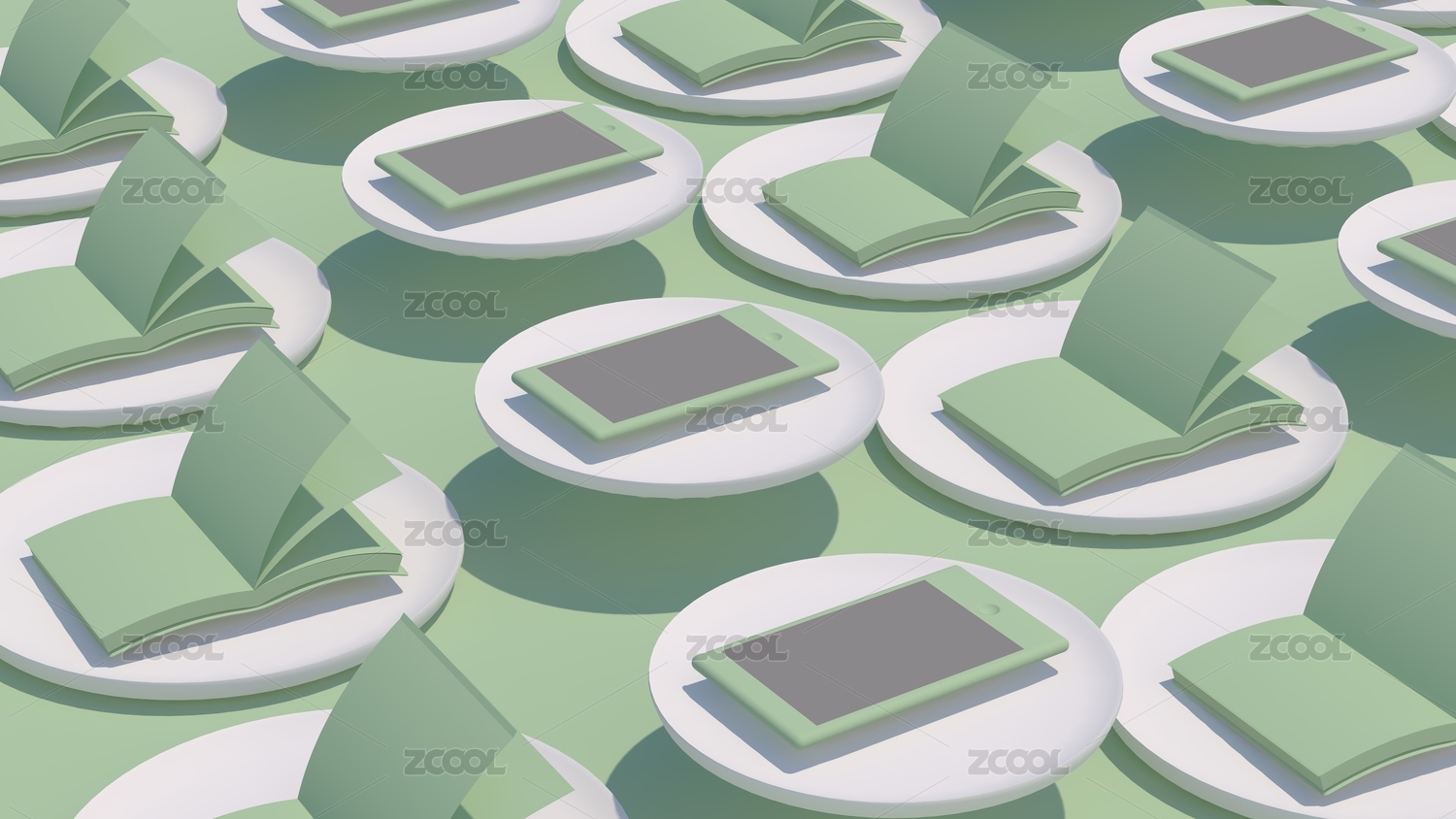純色背景上的電子書(shū)和白色盤(pán)子