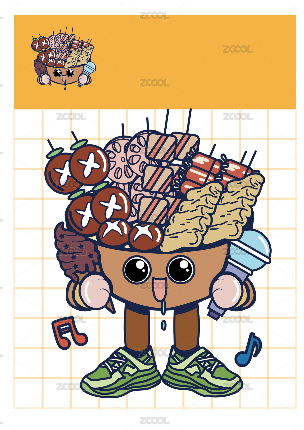 紅油串串火鍋美食水彩插畫