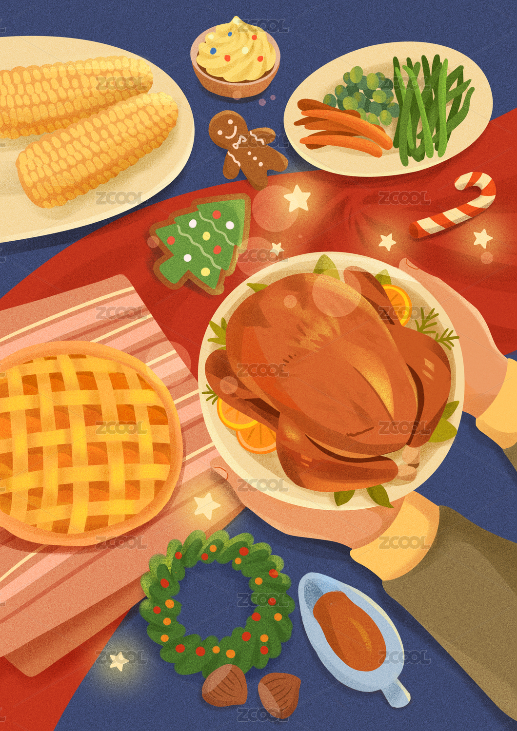 圣誕節(jié)的餐桌上火雞