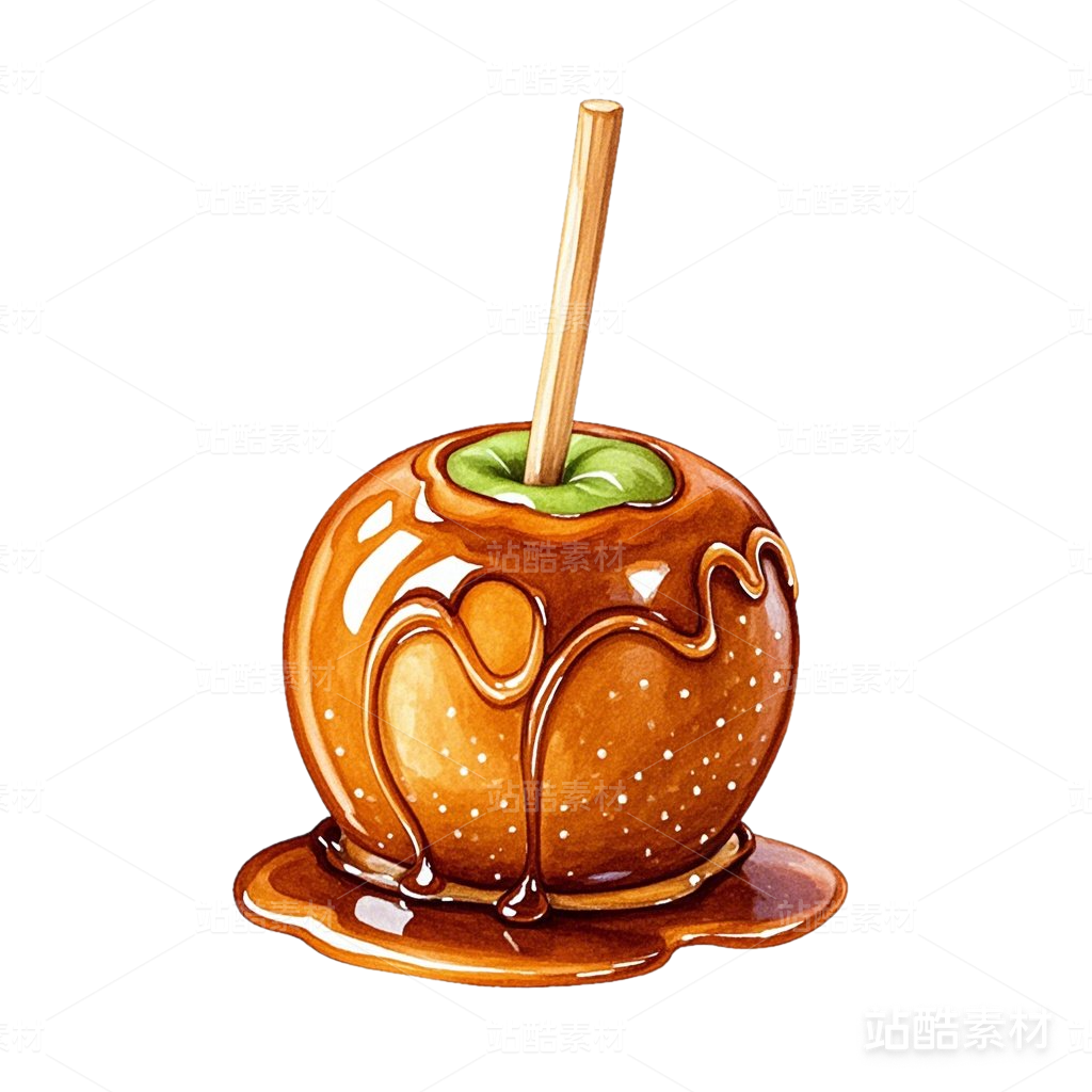 青蘋果圣誕節(jié)焦糖蘋果手繪水彩美食素材