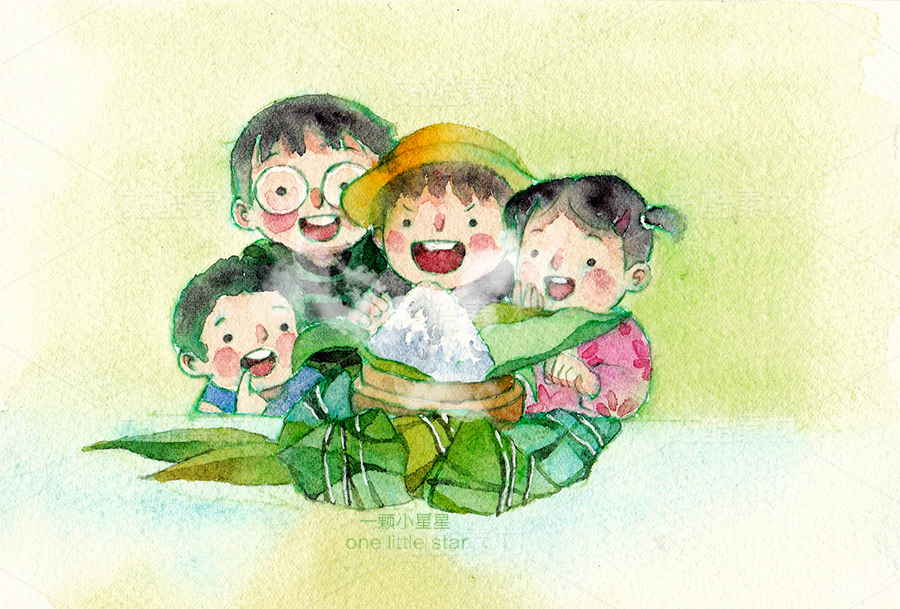 手繪水彩端午