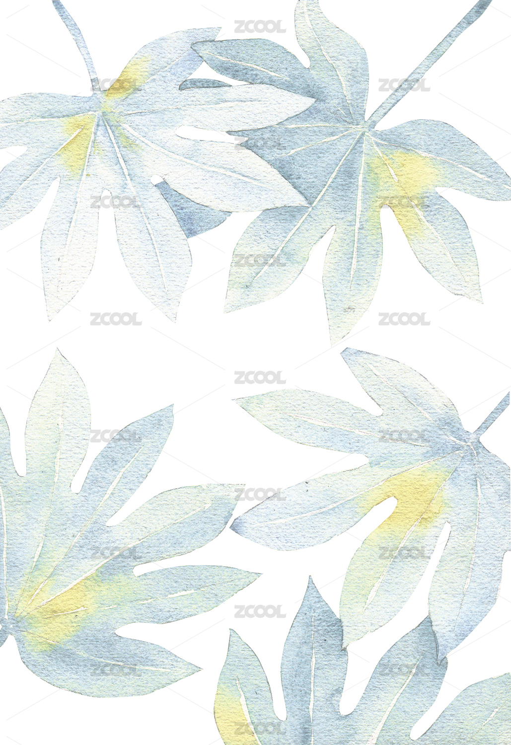 手繪水彩藍(lán)綠色植物葉片