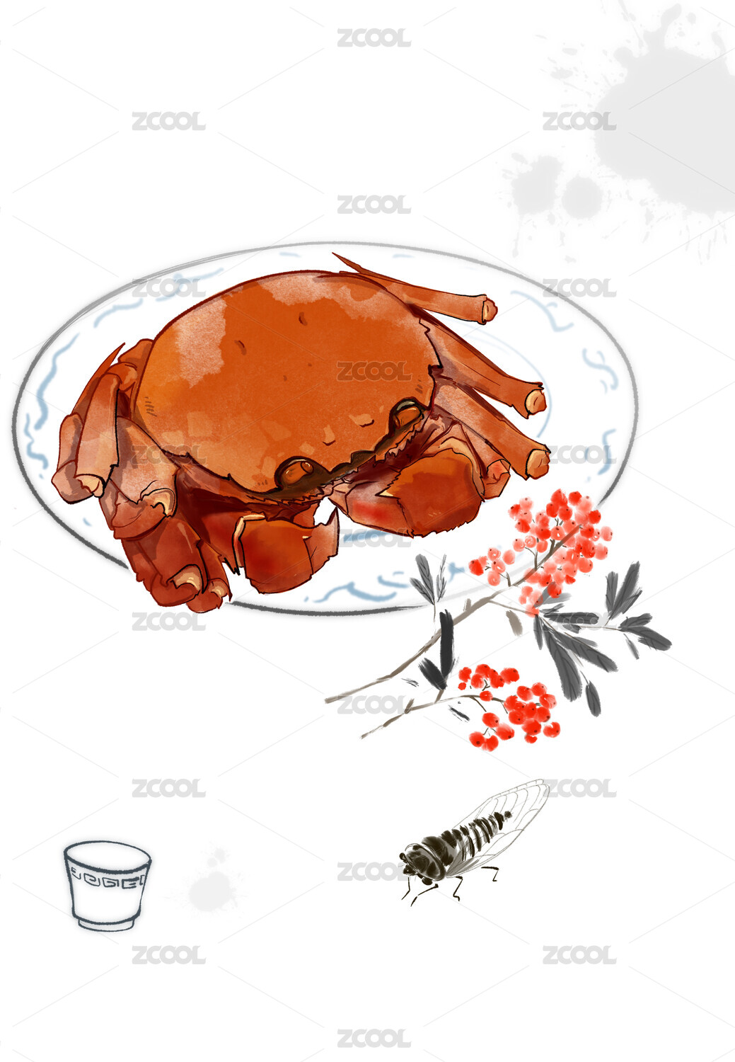 手繪水彩美食秋天美味的大閘蟹