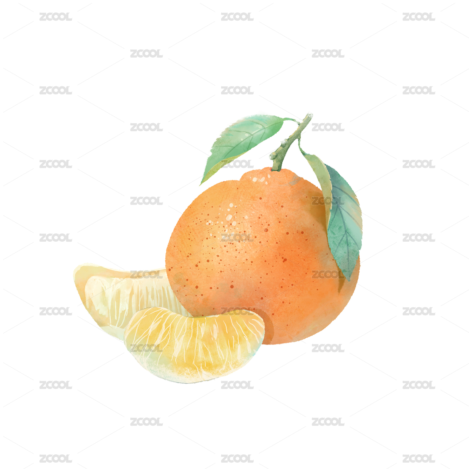 手繪水彩風(fēng)格的橘子 桔子插畫