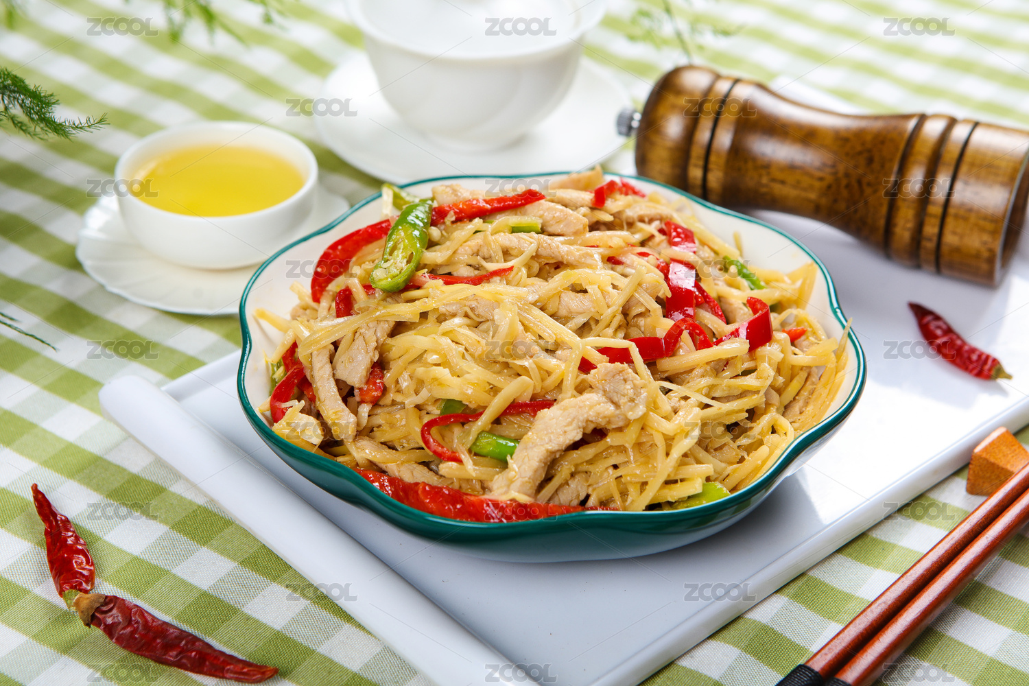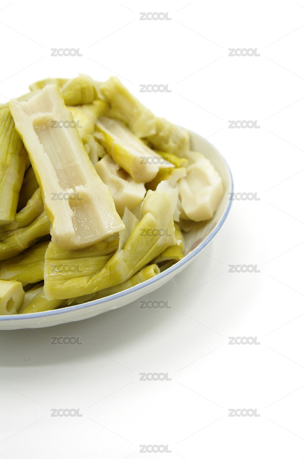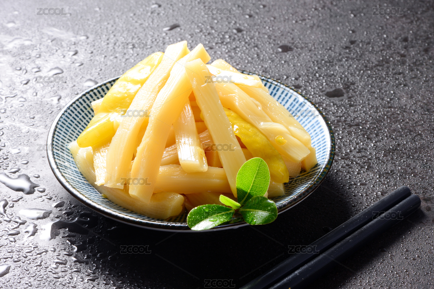 桌面上的盤子里的美味可口的新鮮竹筍絲