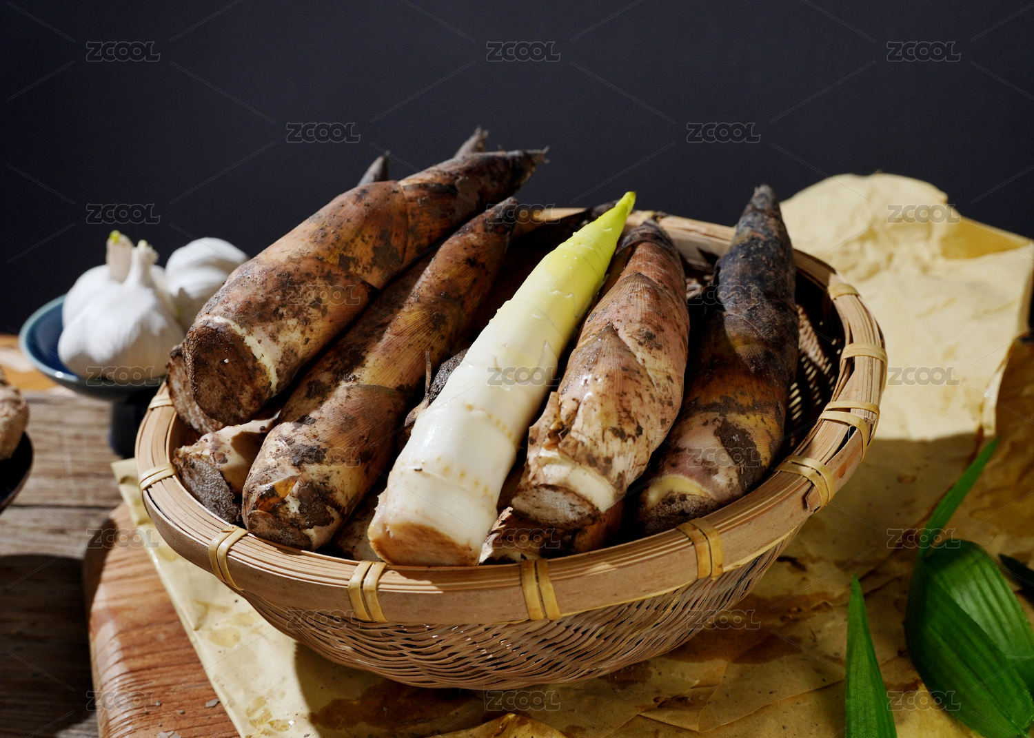 地上的一堆中國傳統(tǒng)食材新鮮竹筍