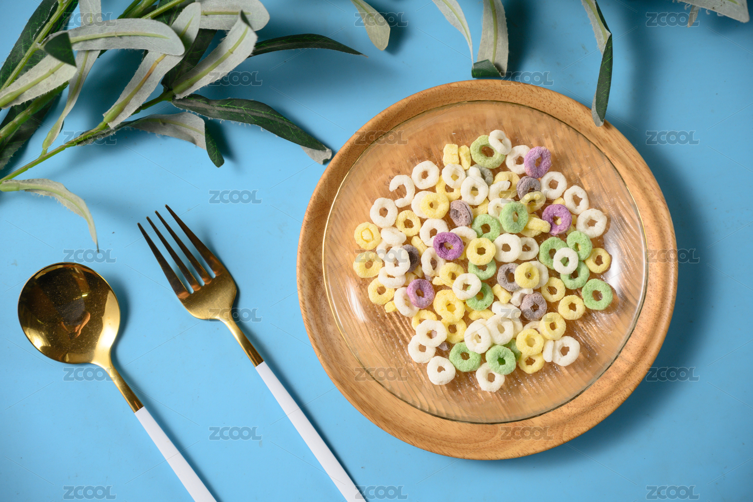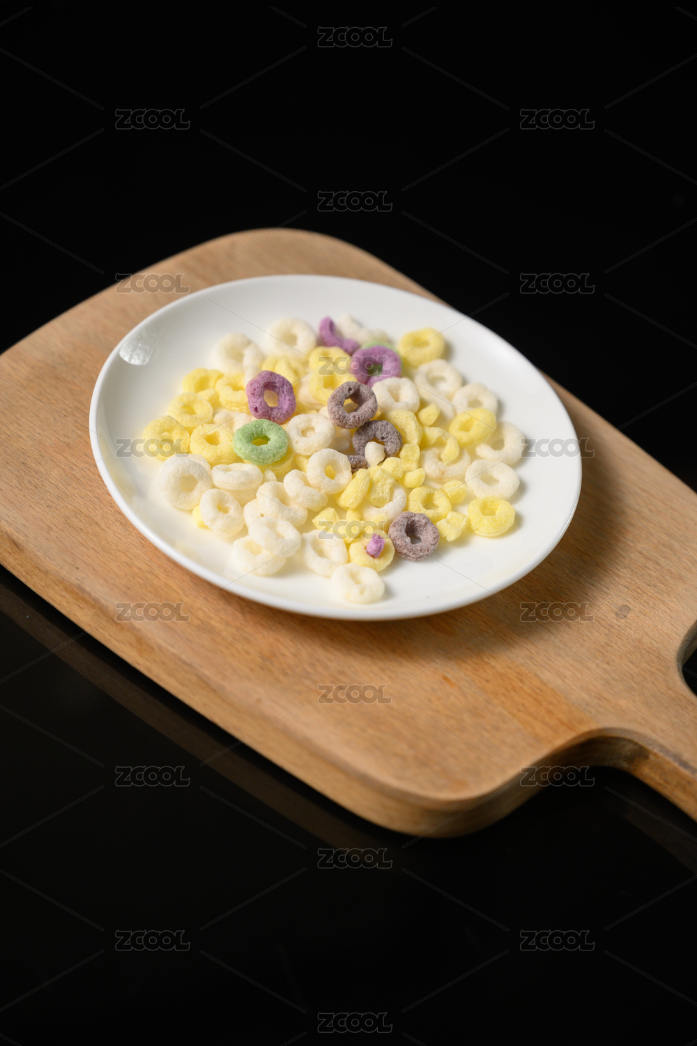 桌面上的盤子里的美味可口的谷物圈