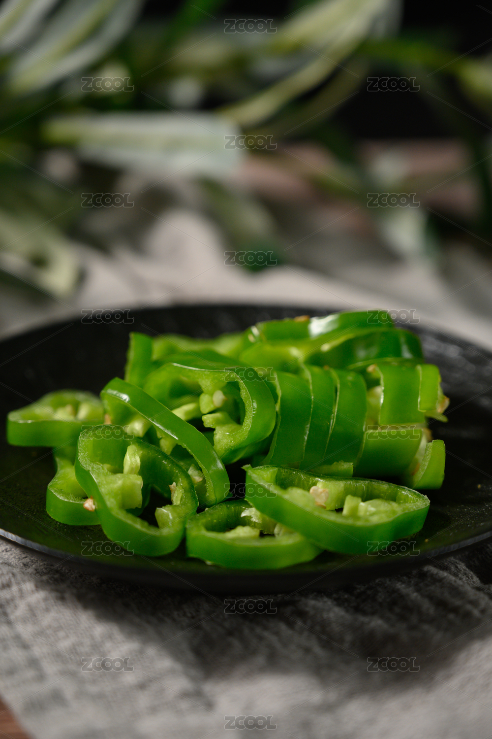 桌面上的盤子里的美味可口的新鮮辣椒圈