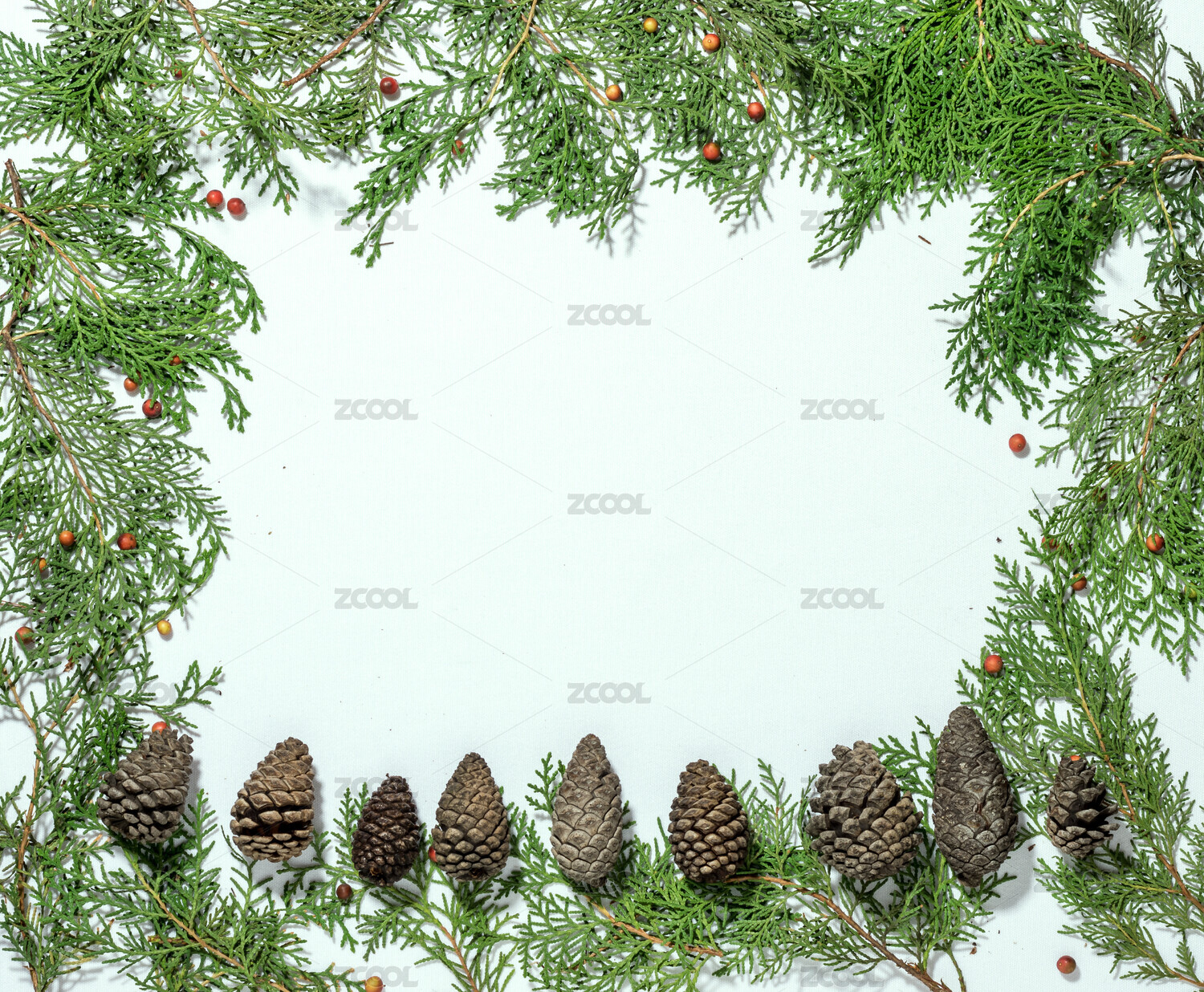 一圈松樹葉子松果擺出來的背景