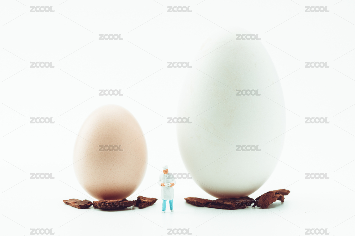 一個(gè)廚師站在雞蛋和鵝蛋中間