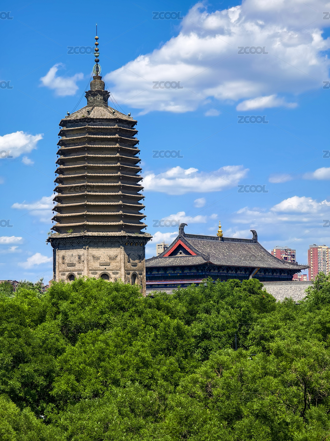 遼寧省遼陽(yáng)市,航拍視角下的白塔和廣佑寺