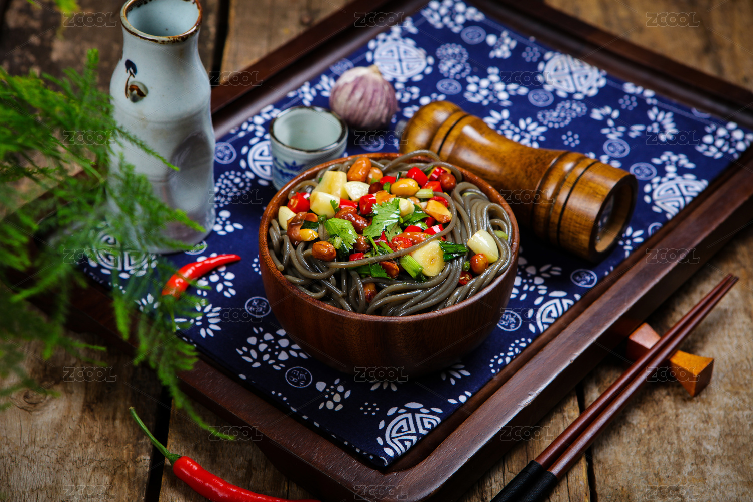 木紋背景上盤子里的小菜
