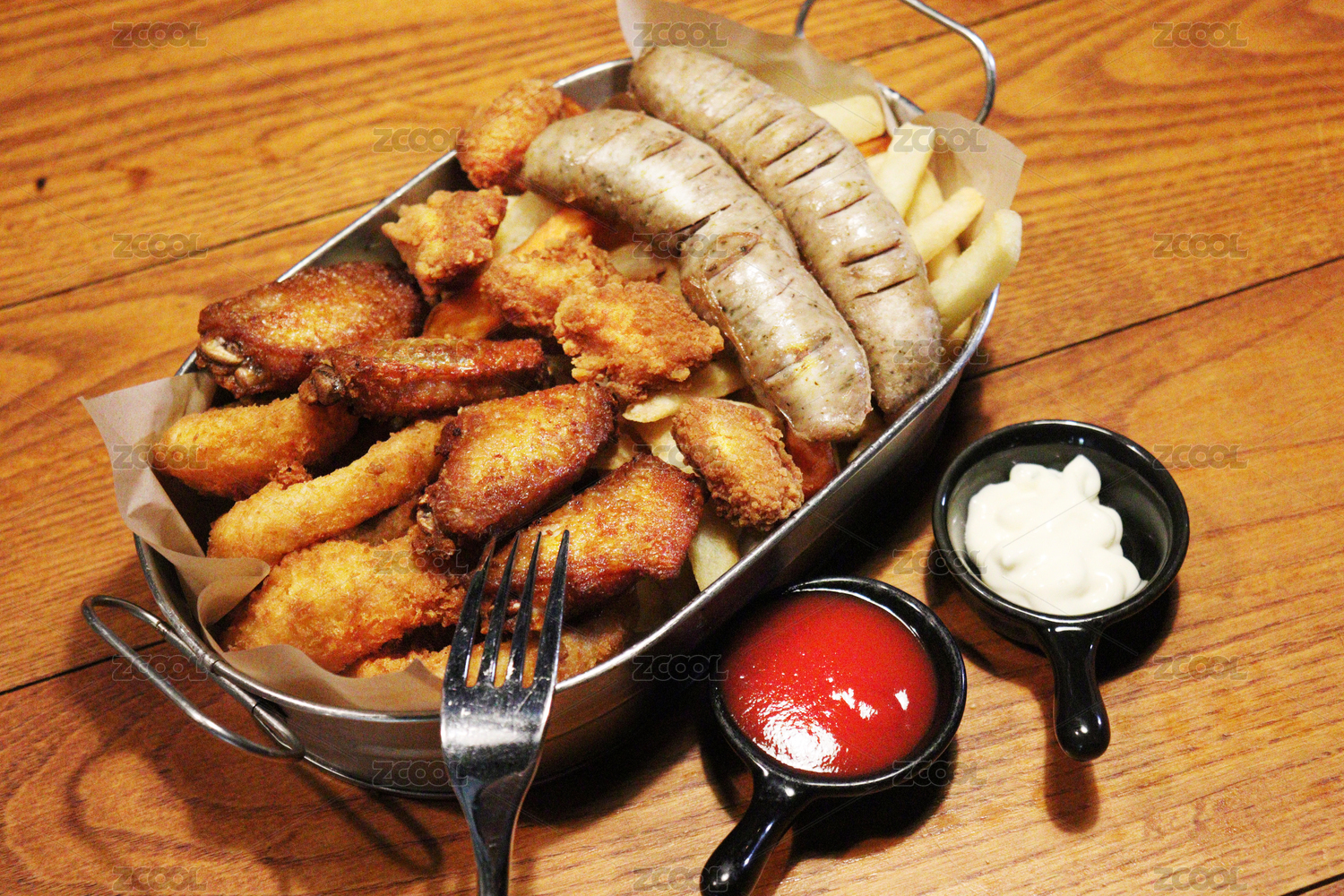 油炸食物,香腸,魚排