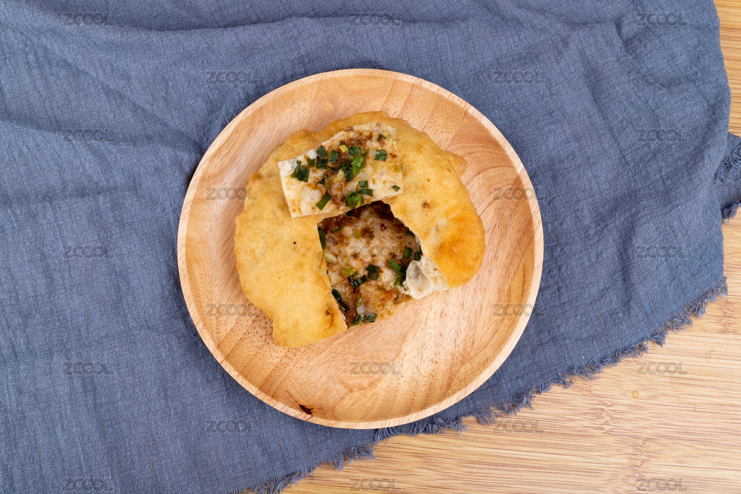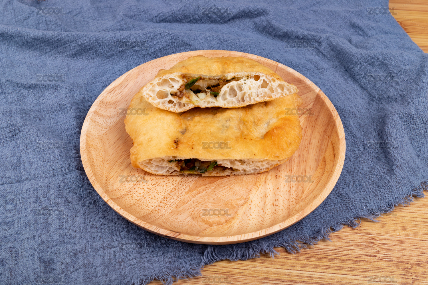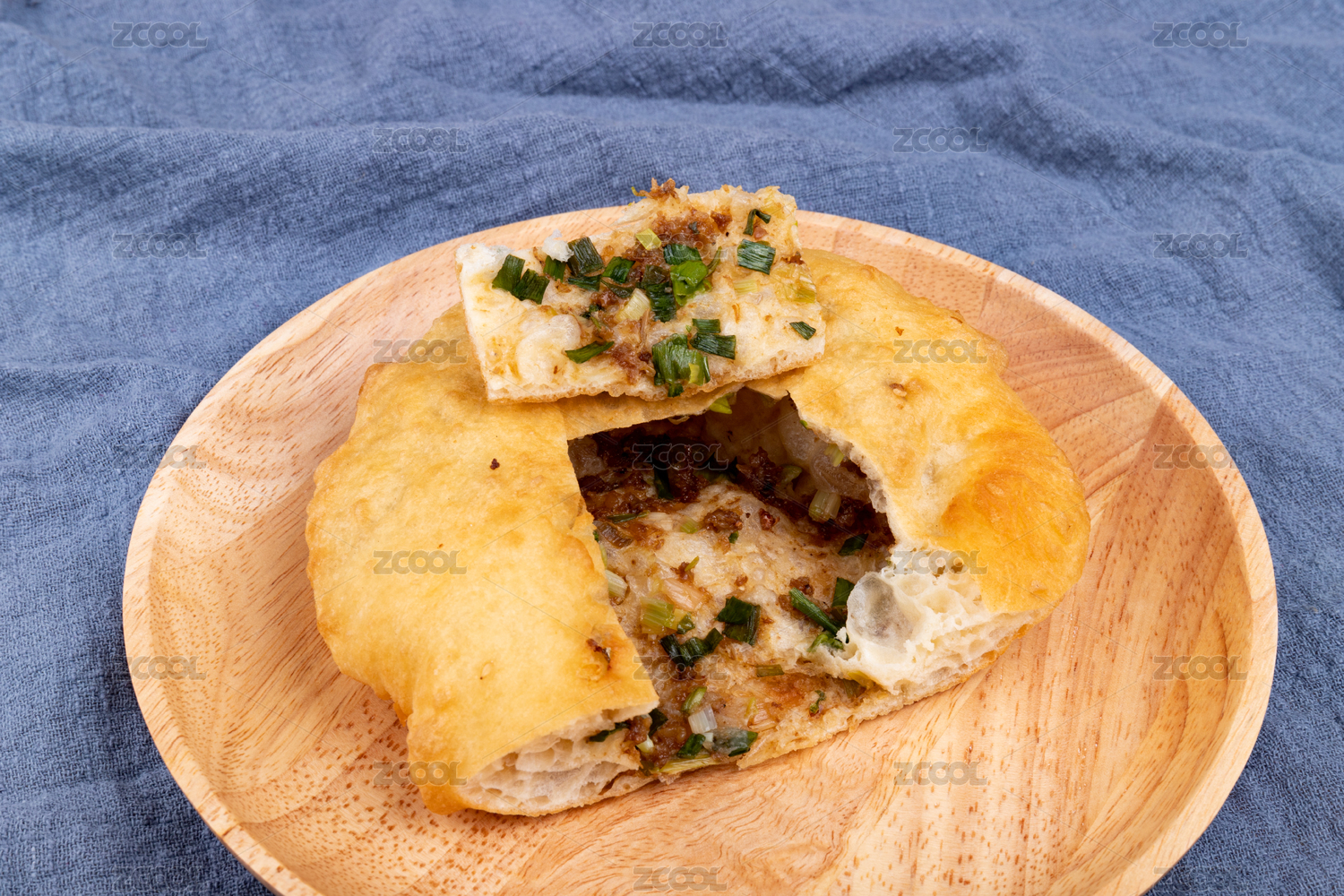 木盤子里的油炸食物蔥肉餅