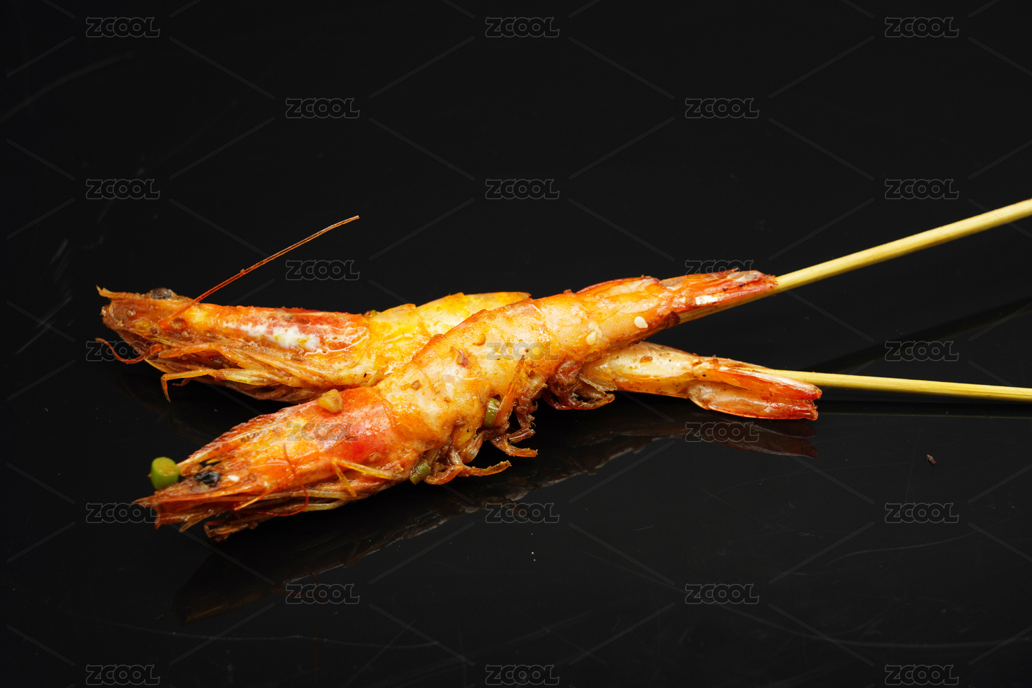 兩只餐飲美食香辣串燒大蝦