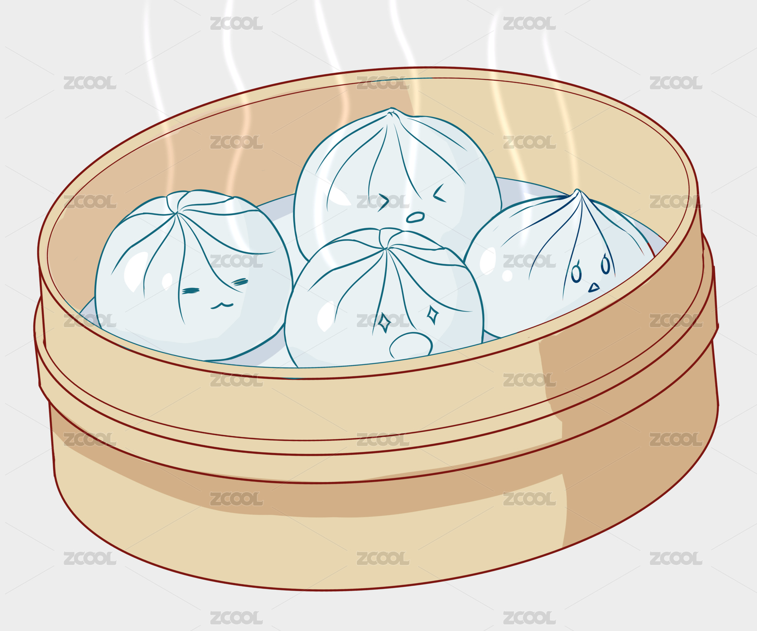 卡通餐飲美食擬人小籠包插畫