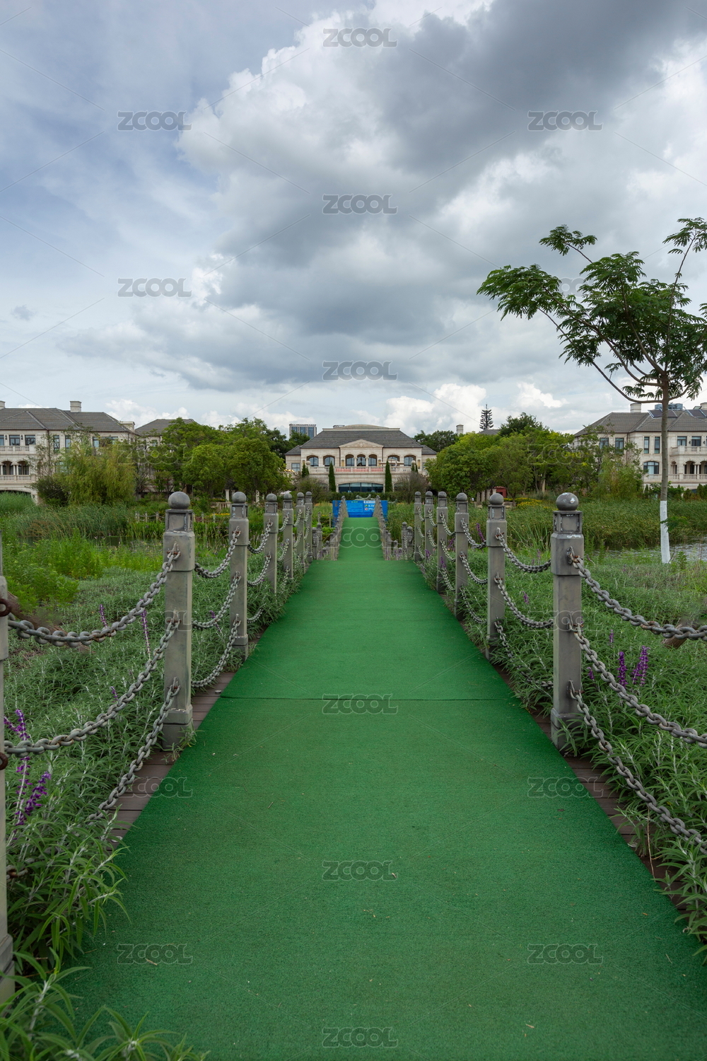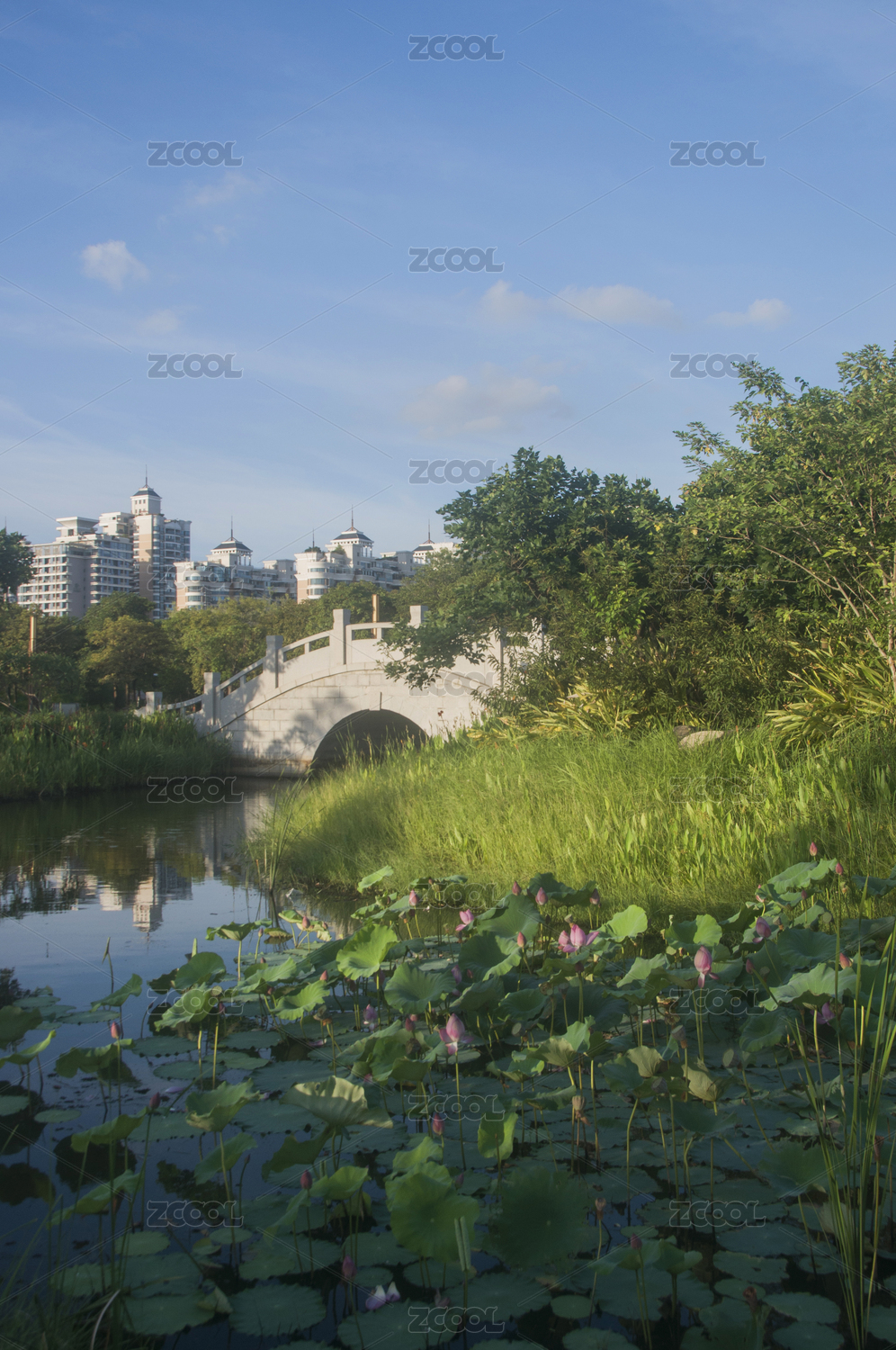 中國(guó)云南昆明星海濕地公園藍(lán)天白云小橋