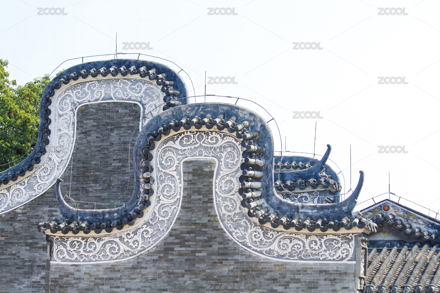 中國廣東省佛山順德鳴石花園嶺南古建筑屋頂窗口