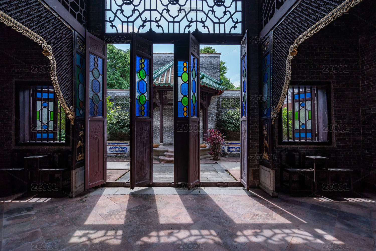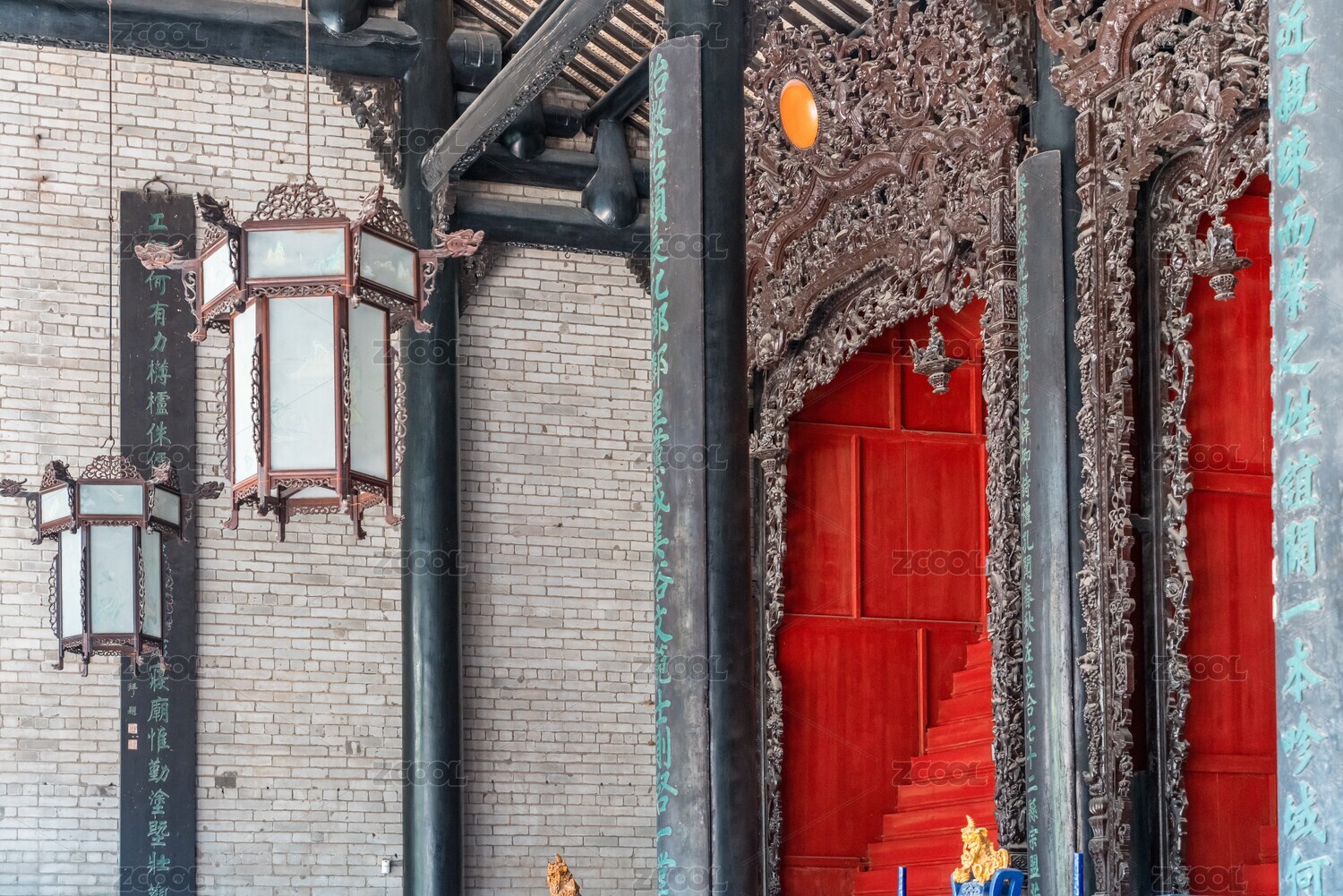 廣州陳家祠中式廳堂嶺南雕花紅木家具內景
