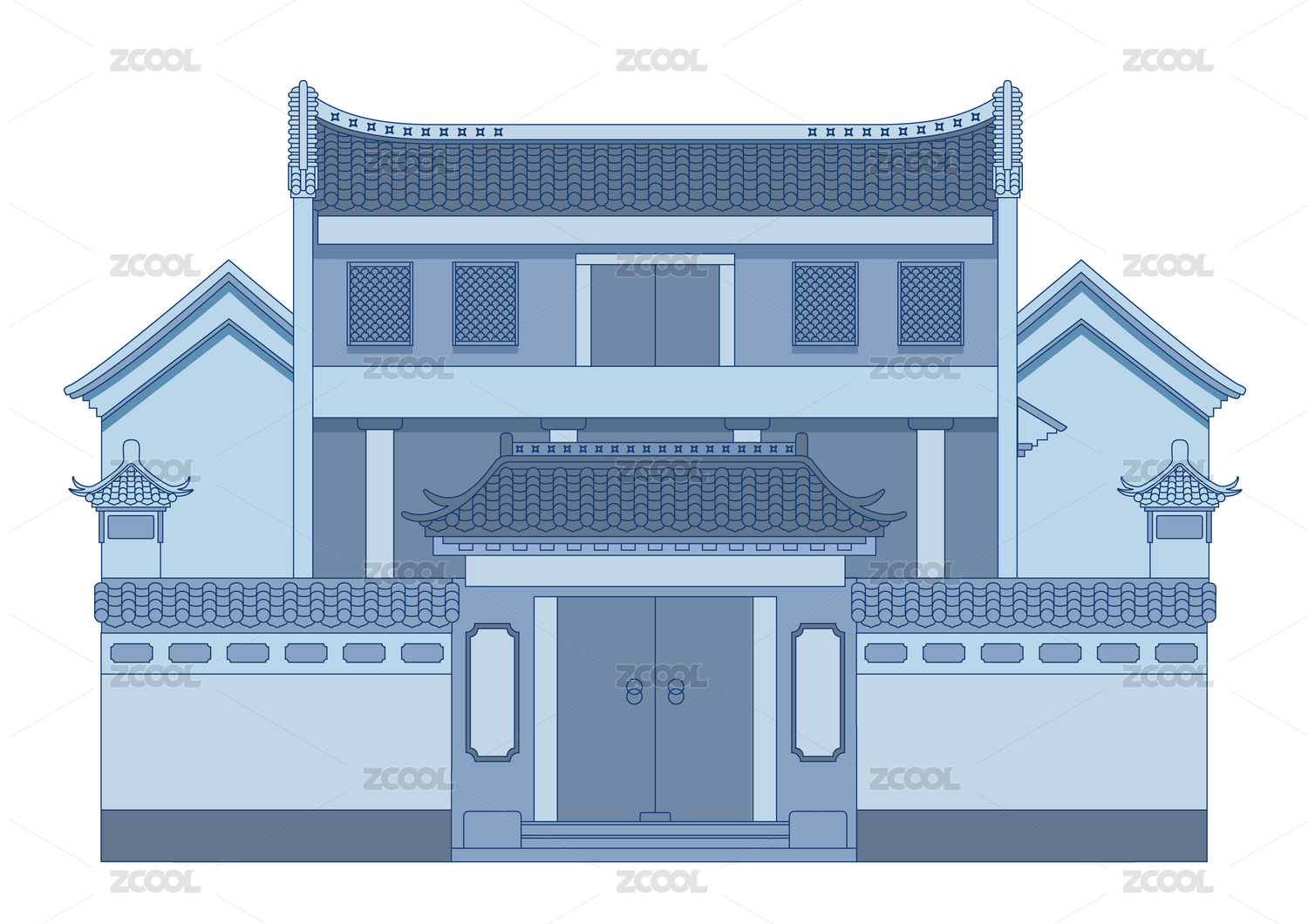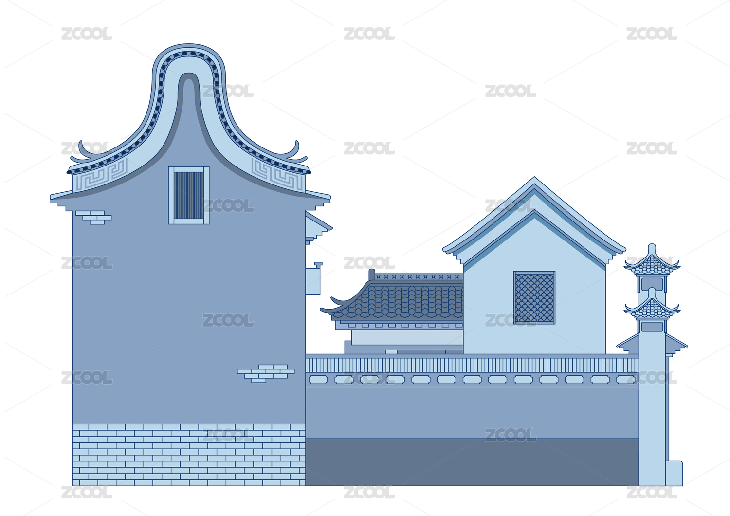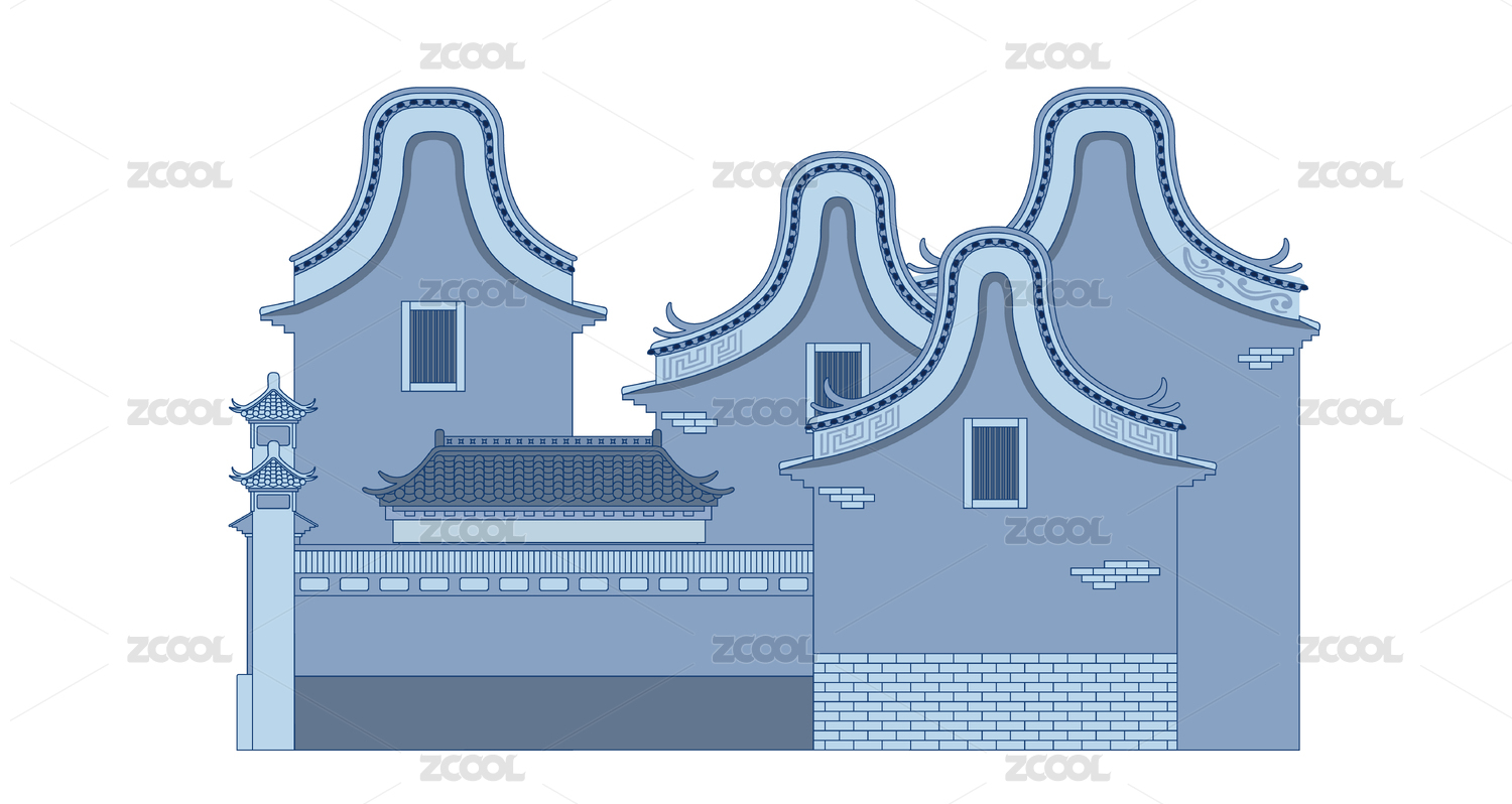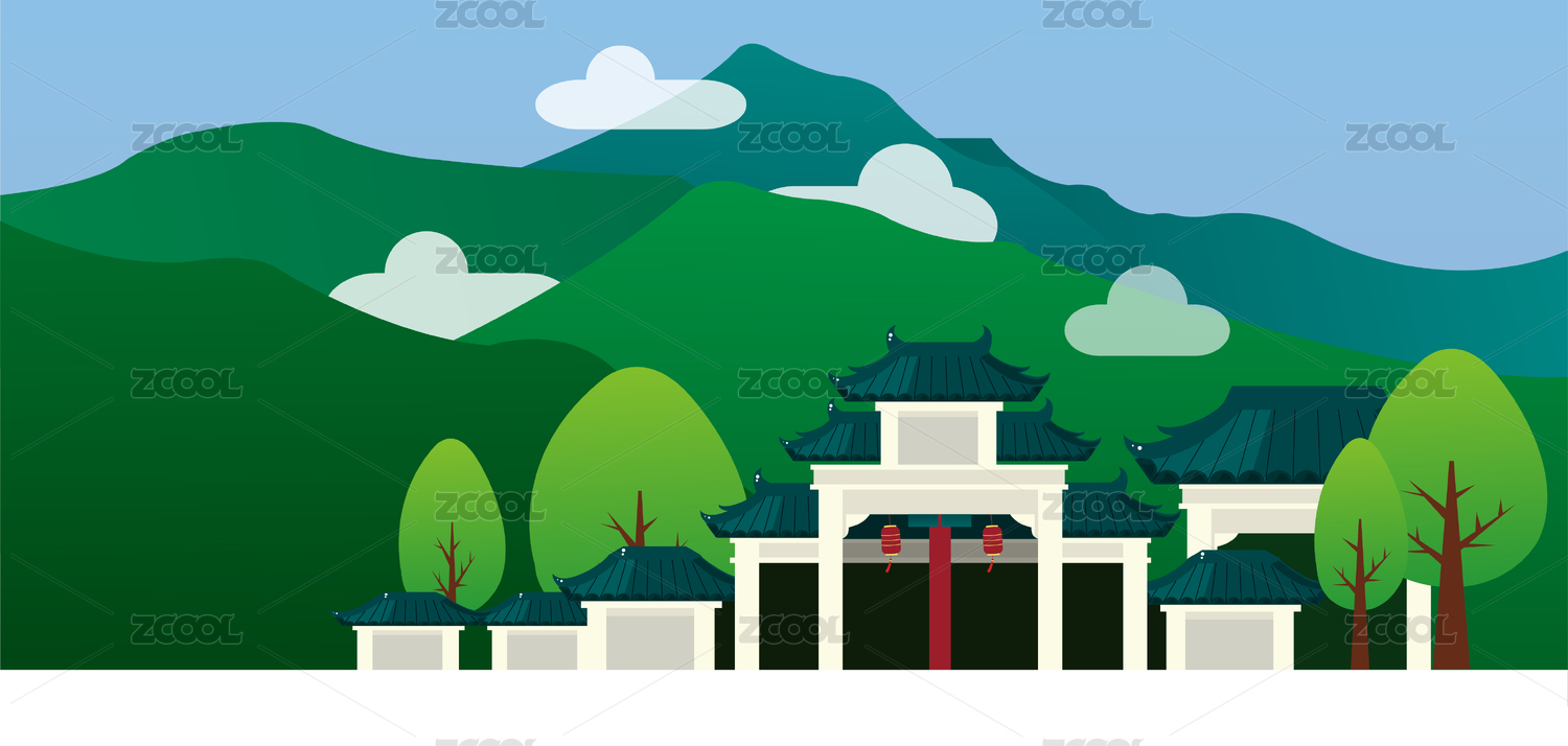 廣東嶺南特色建筑矢量扁平化插畫羅浮山