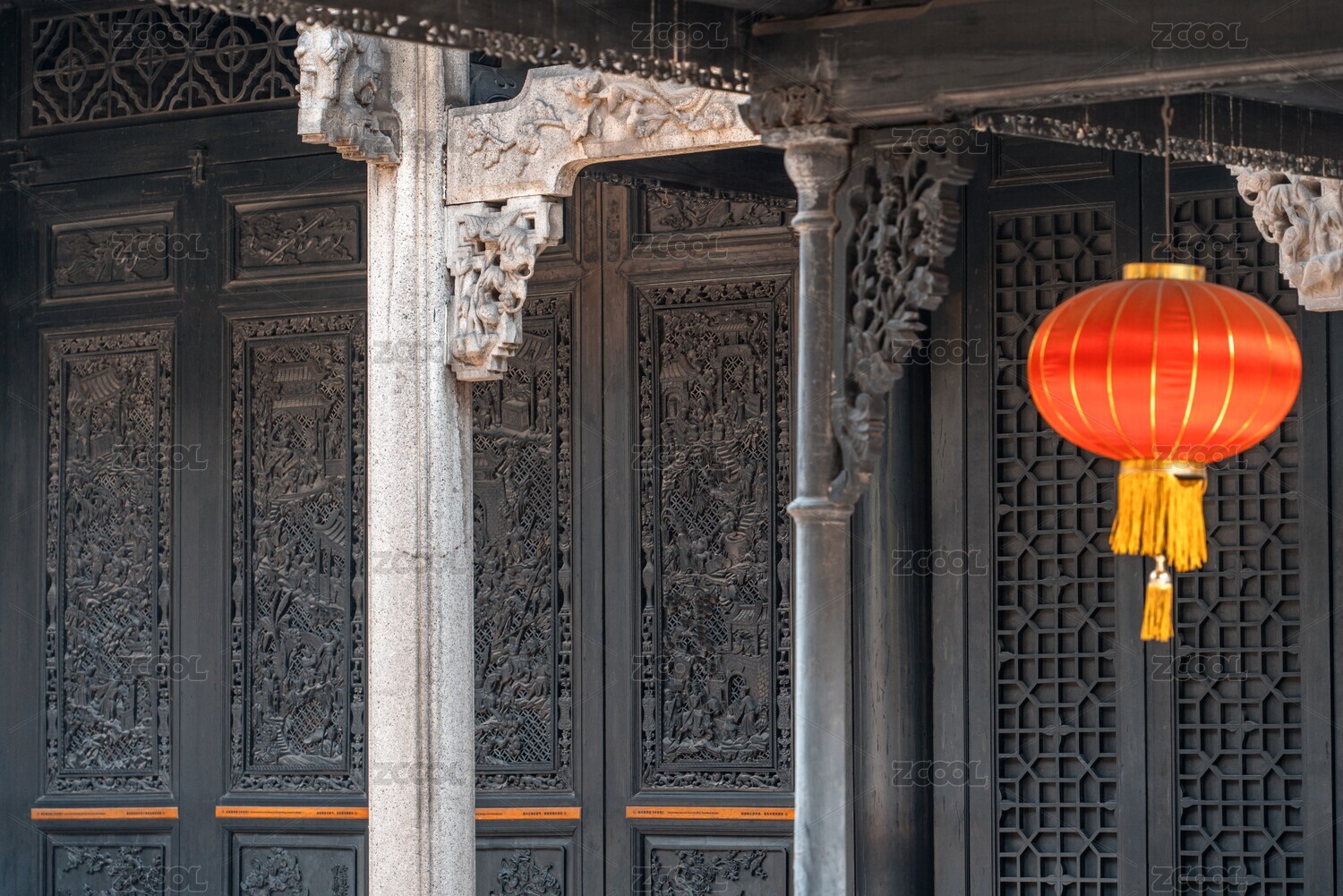 深圳甘坑客家小鎮(zhèn)門樓門楣嶺南風格灰塑木雕