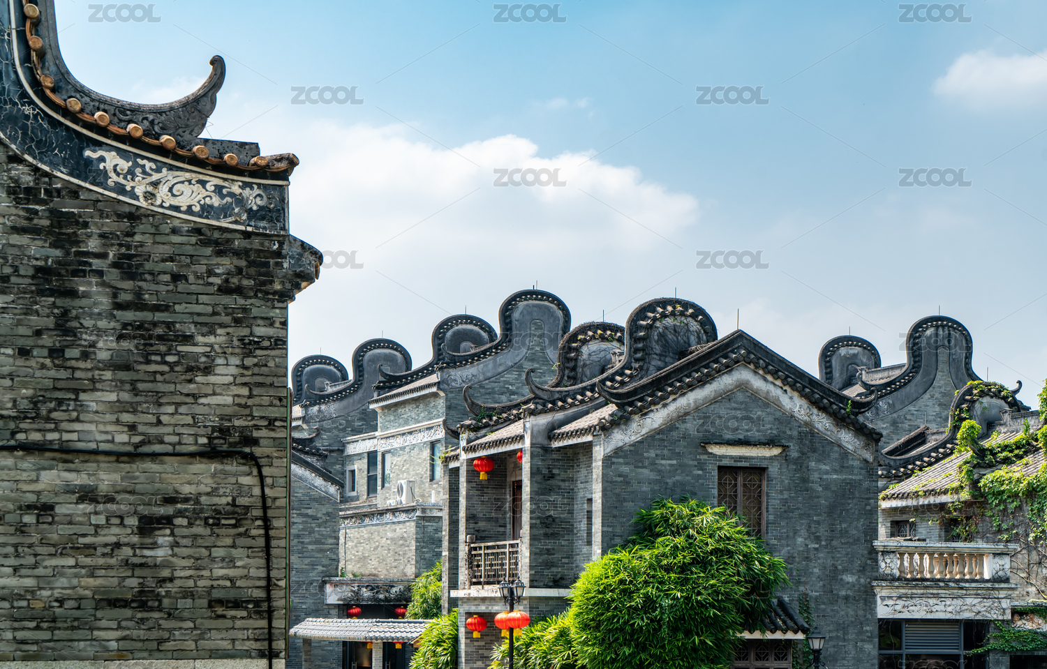 中國廣州嶺南傳統(tǒng)園林建筑航拍