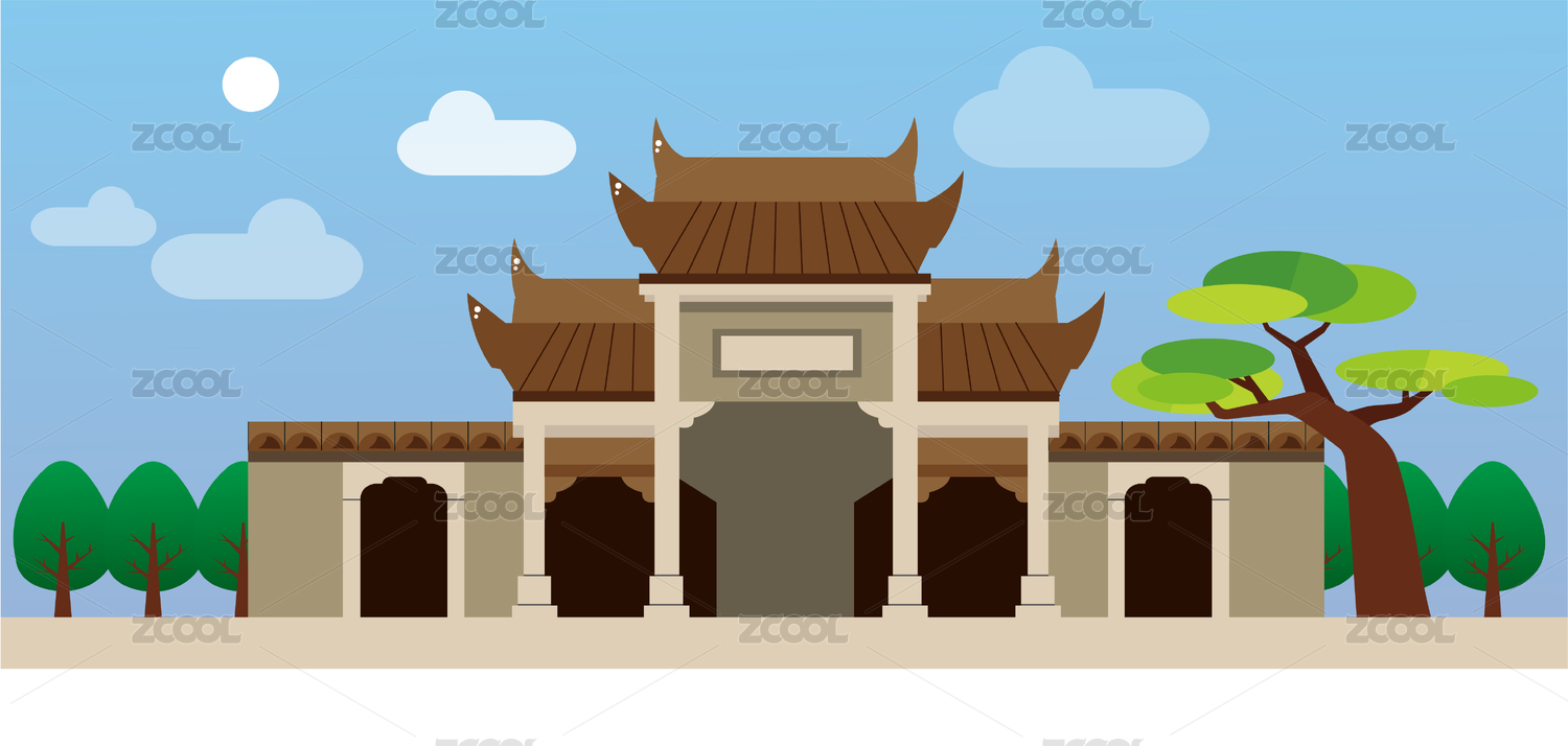 廣東嶺南特色建筑矢量扁平化插畫佛山祖廟