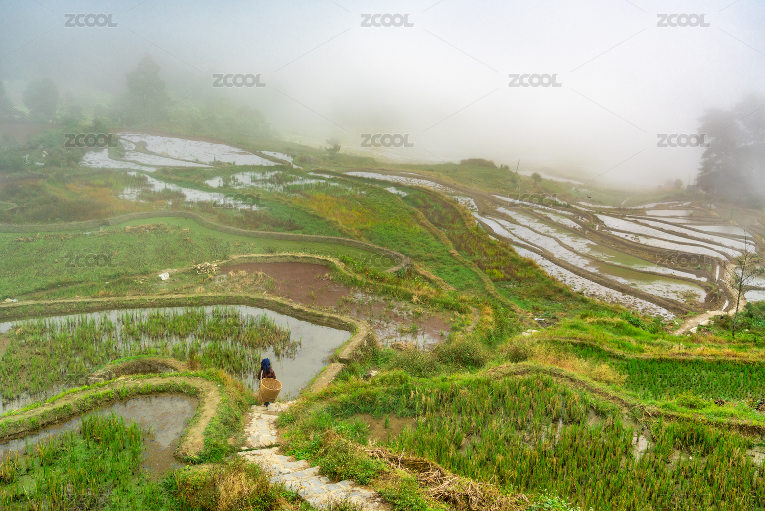 晨霧中的中國云南紅河州元陽哈尼梯田