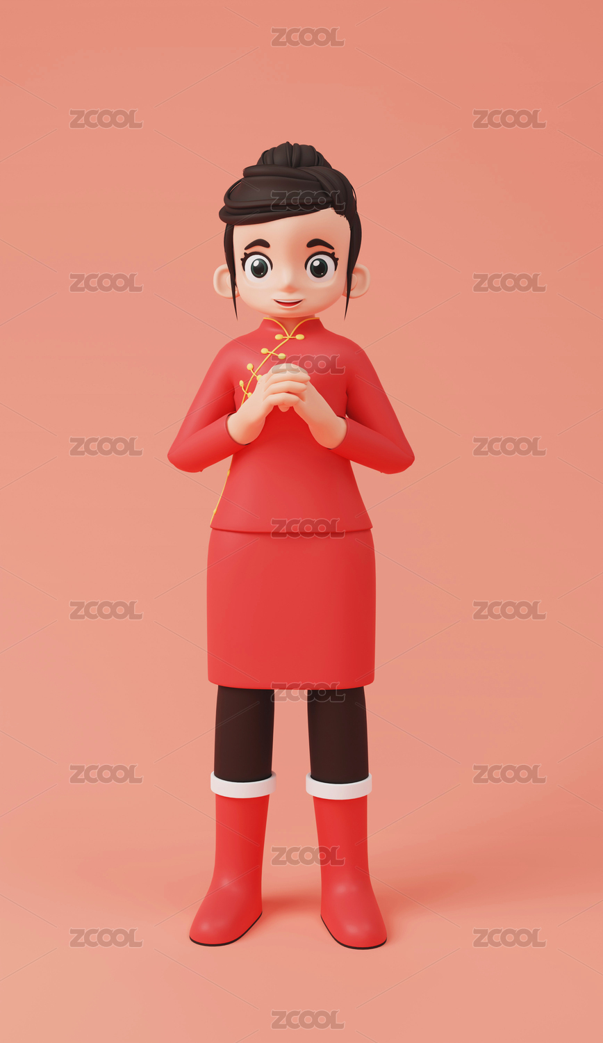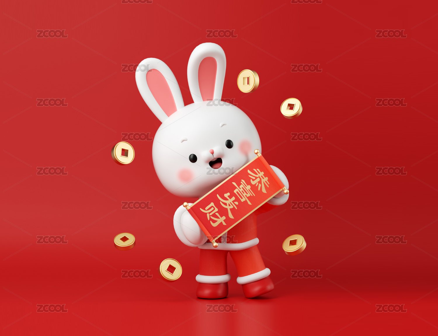 3D渲染的兔子拿著恭喜發(fā)財對聯(lián)祝賀