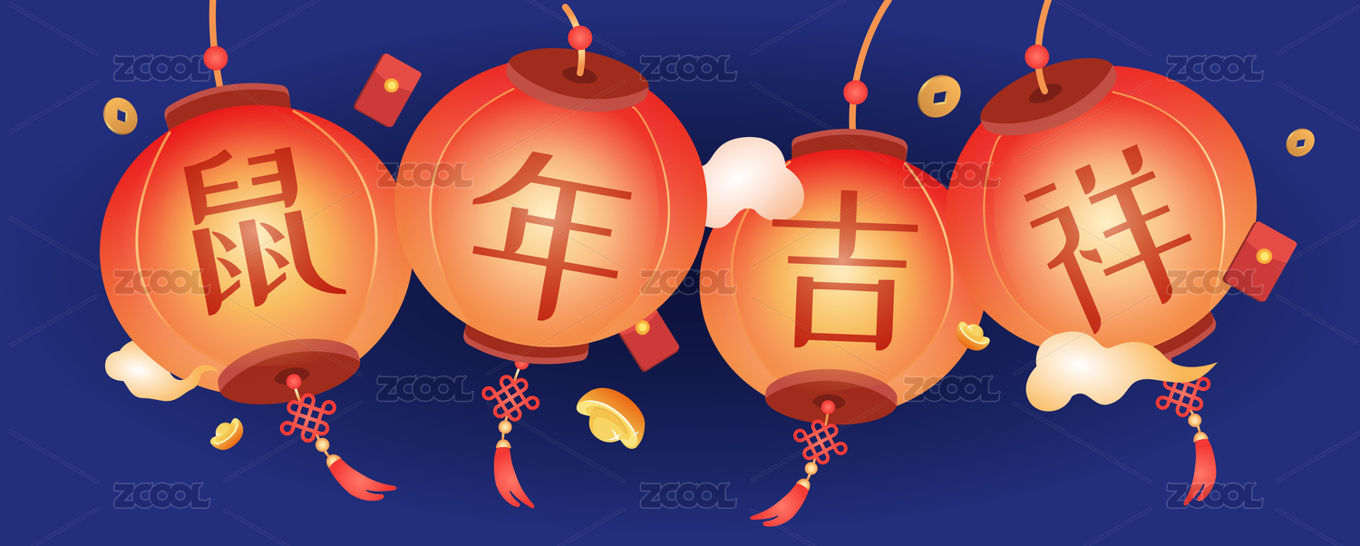 大紅燈籠祝賀二零二零年鼠年吉祥