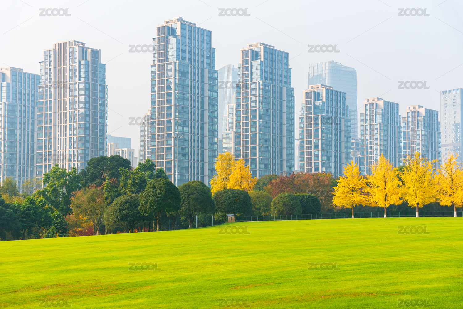 重慶兩江新區(qū)中央公園大草坪與城市建筑