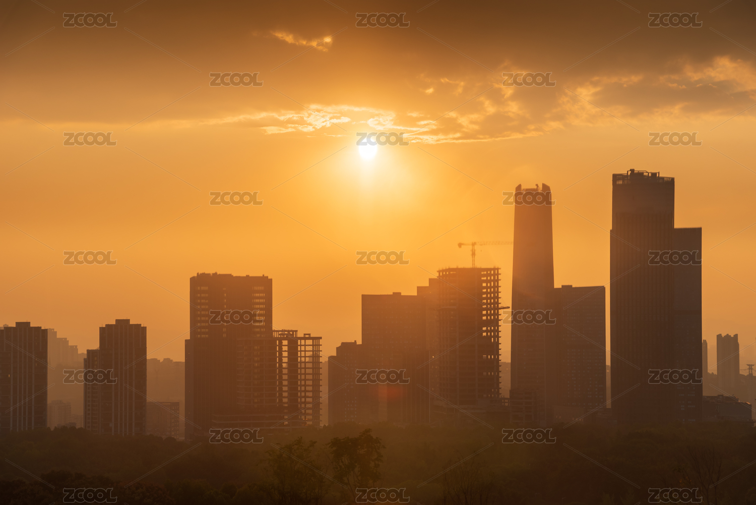 重慶市中央公園商務區(qū)傍晚城市日落風光