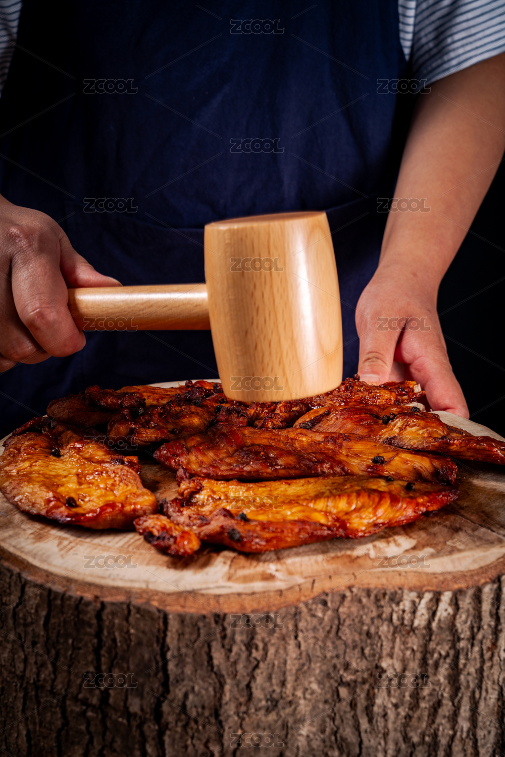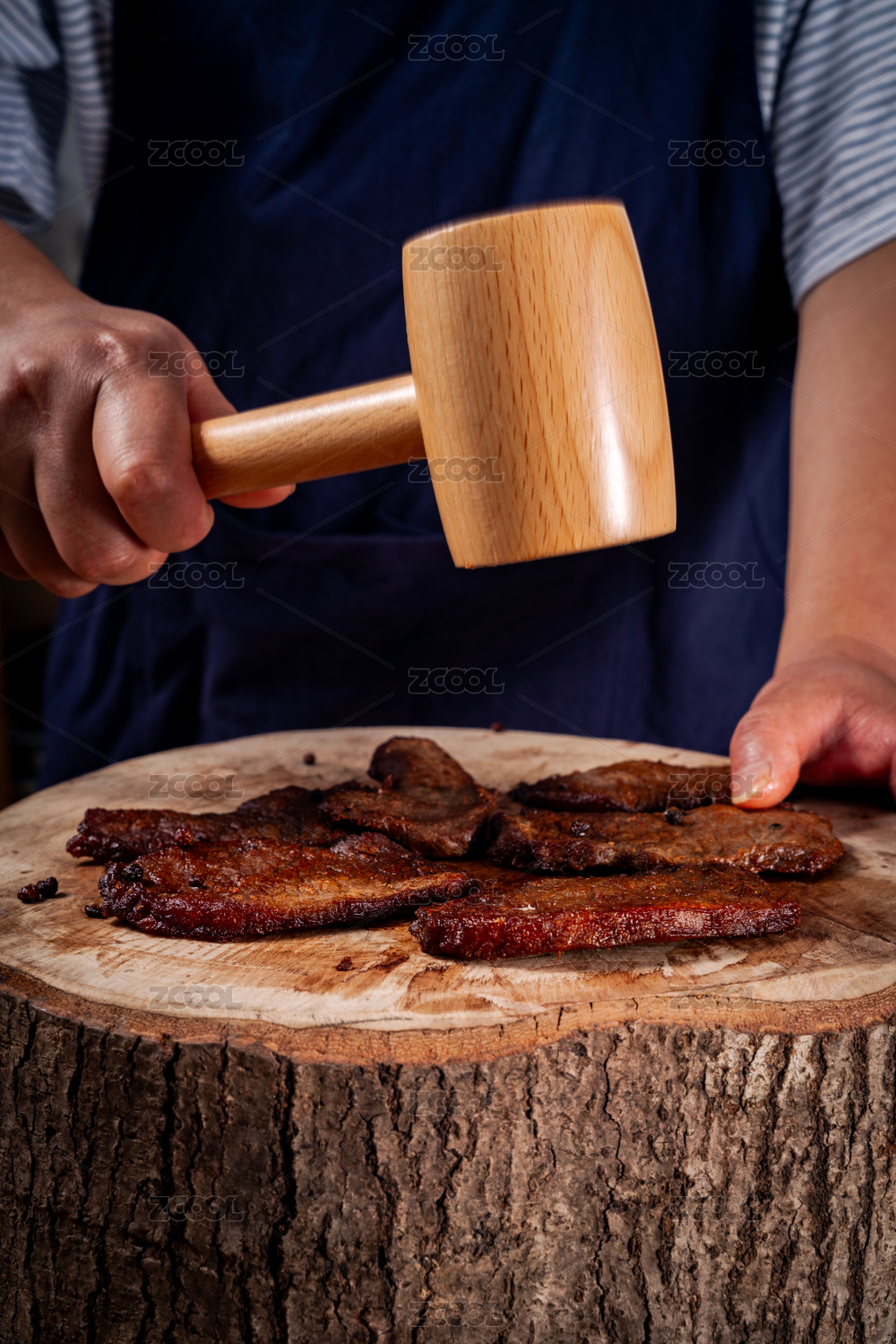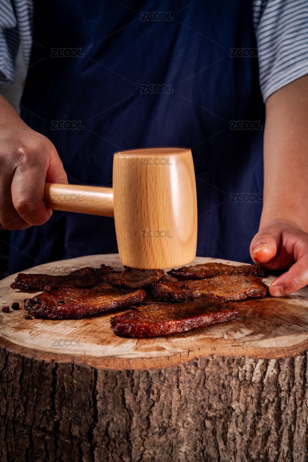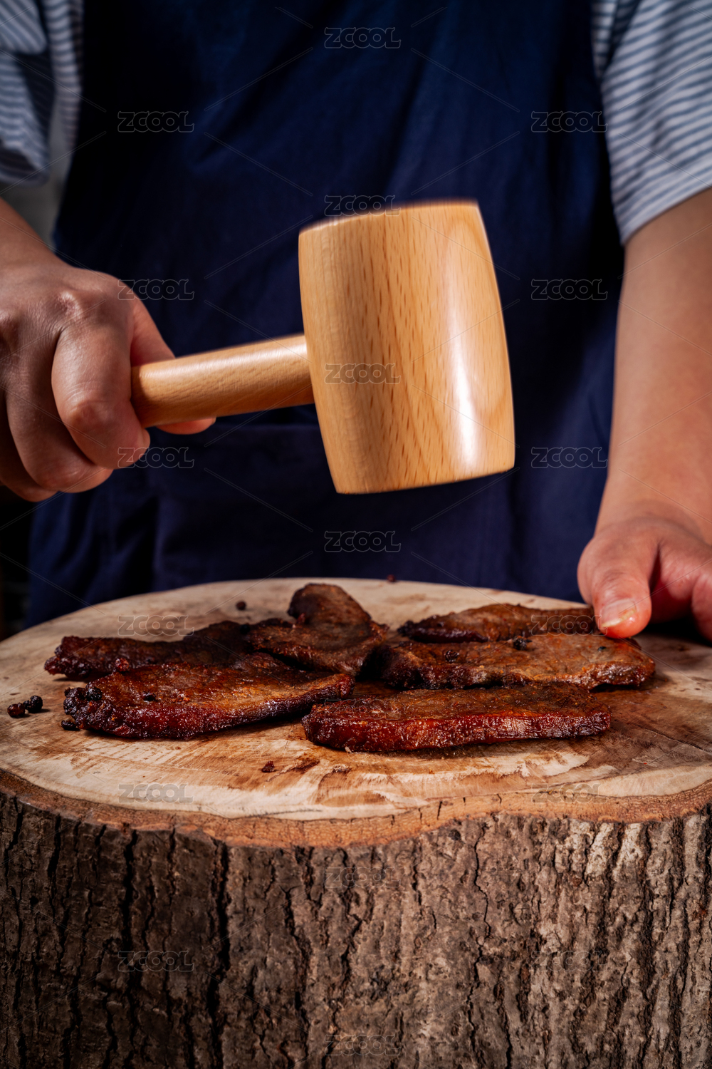用木槌捶打肉干