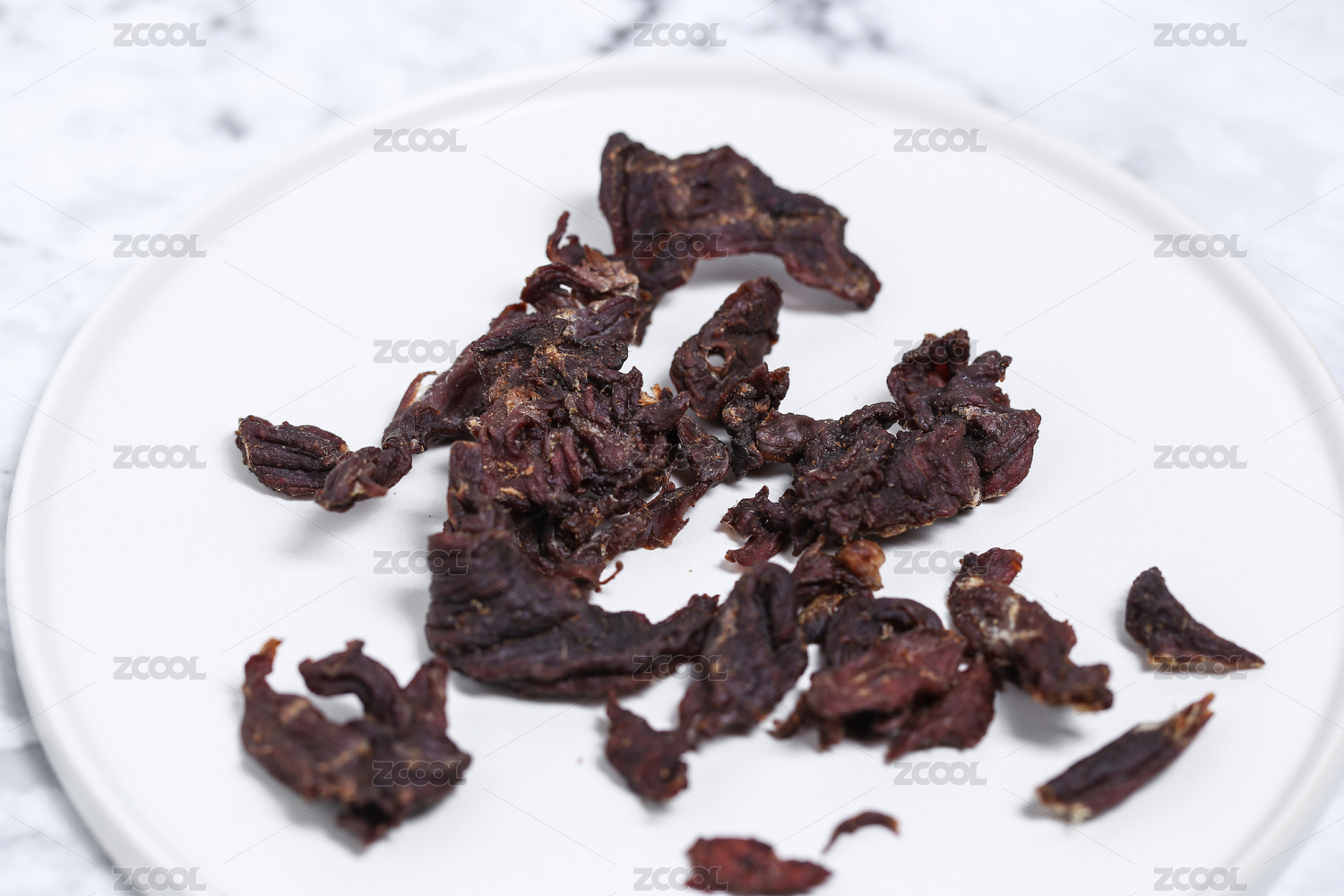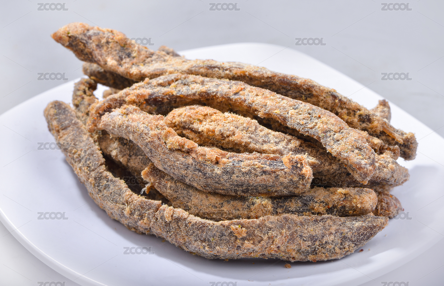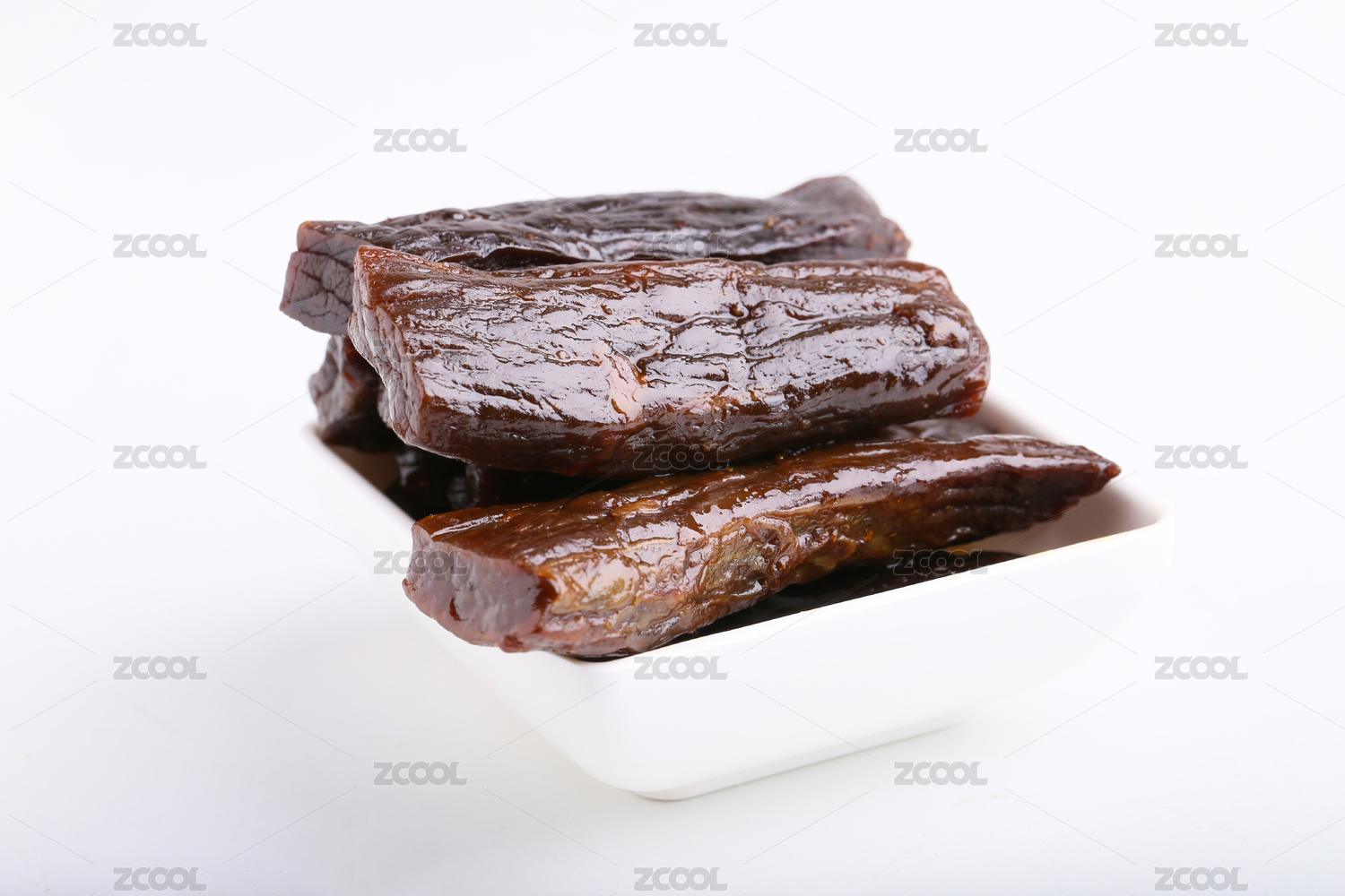 放在白色背景的牛肉干
