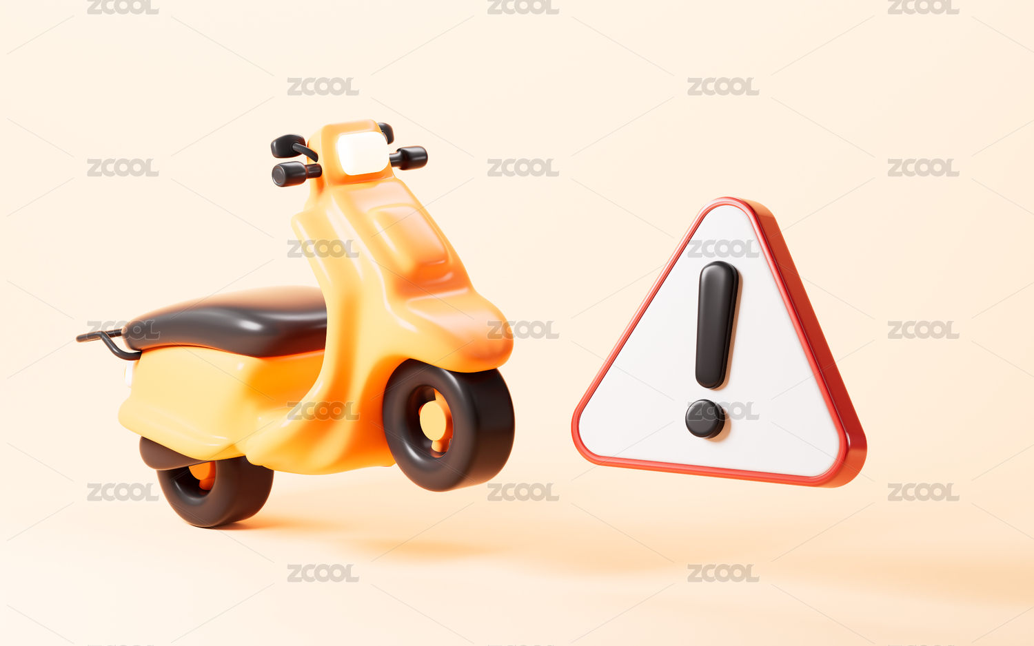 卡通電瓶車(chē)和警示標(biāo)志3D渲染