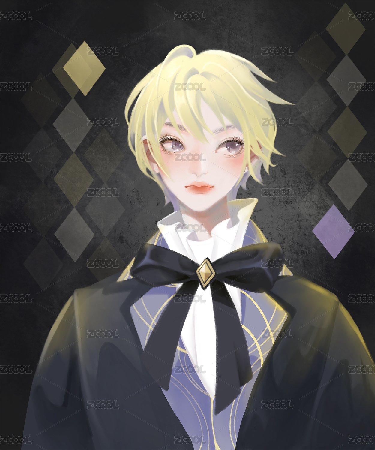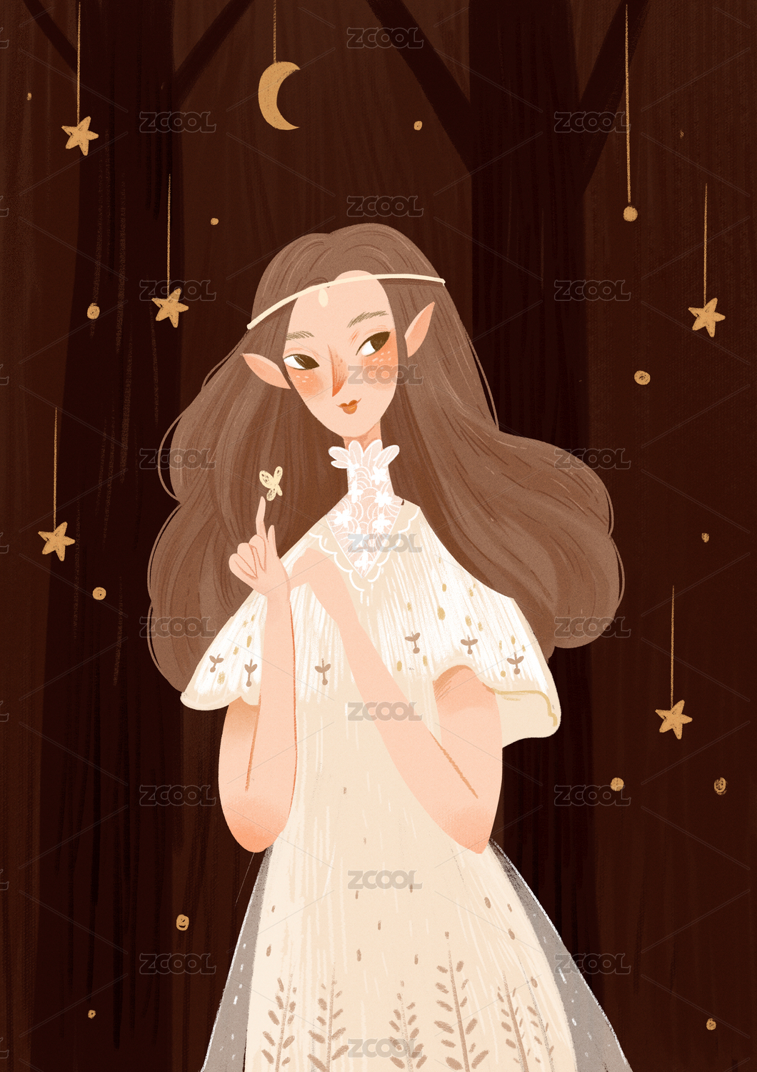 歐美美女人像白發(fā)黑皮露背蝴蝶結(jié)肌理插畫