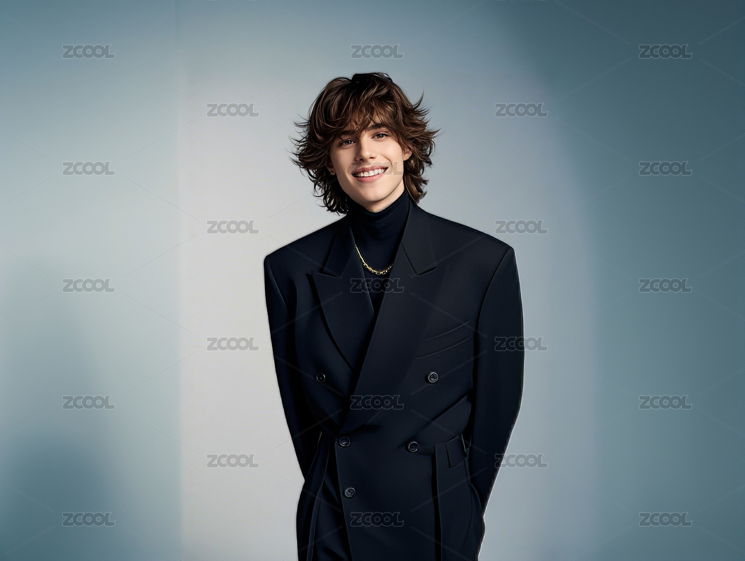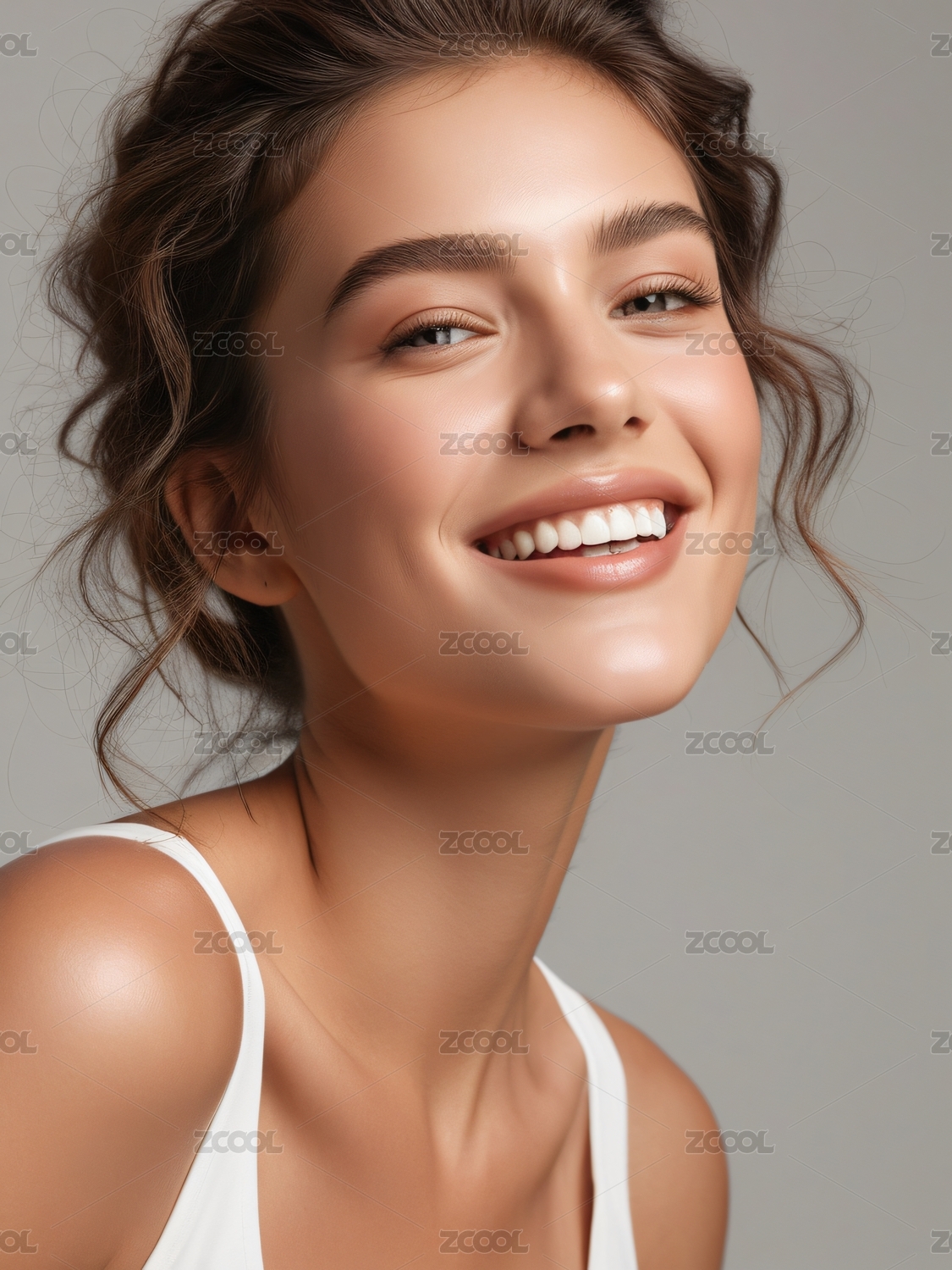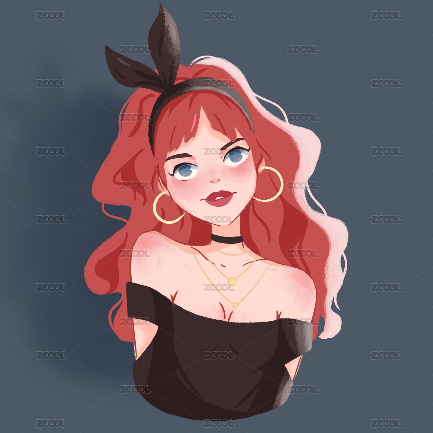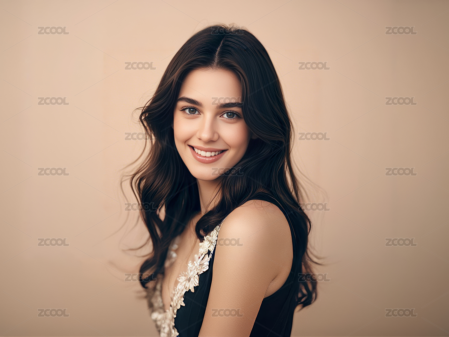 開心微笑大波浪卷發(fā)女生正面?zhèn)劝肷須W美人像