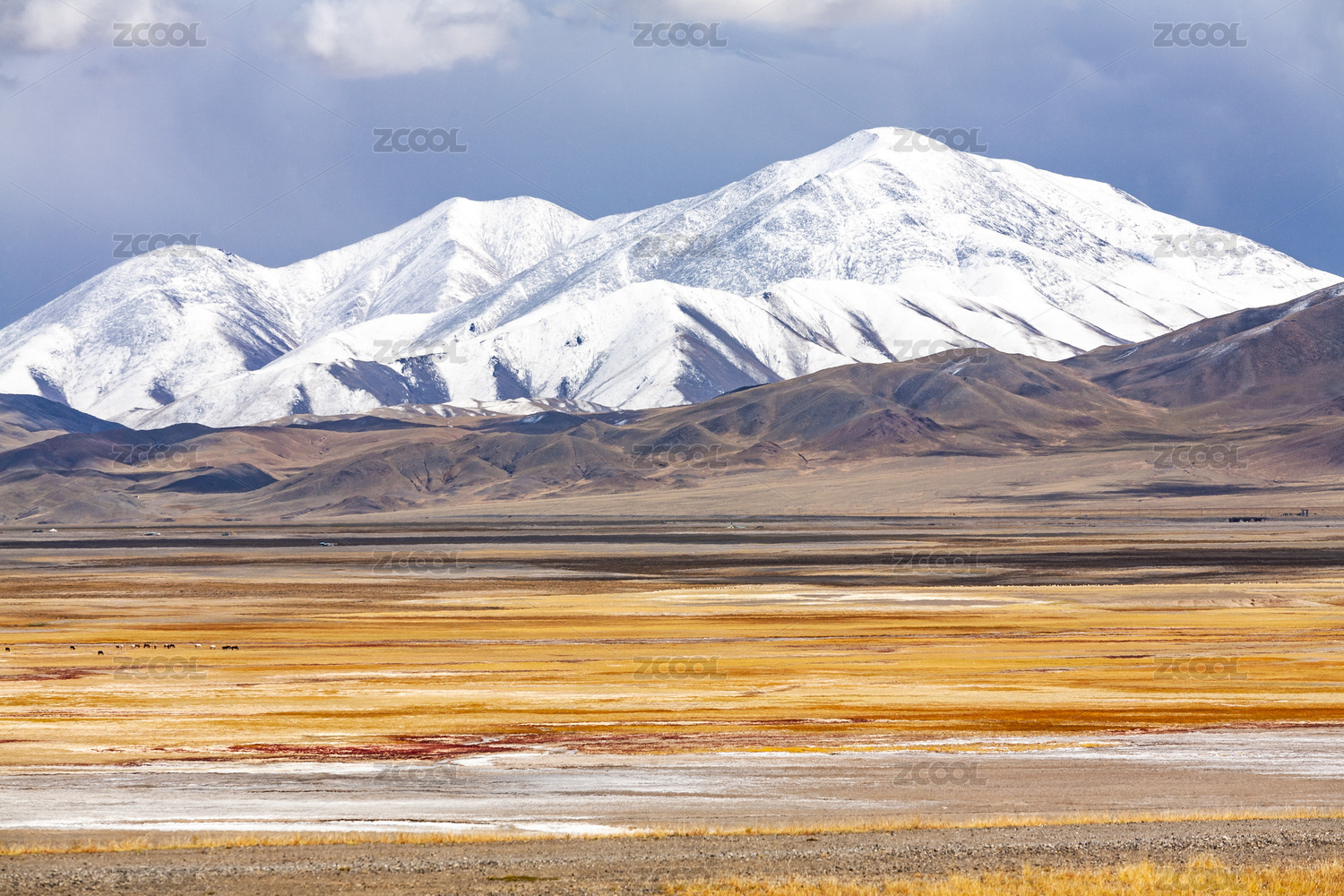 中國(guó)西藏阿里暴風(fēng)雪來(lái)臨前的雪山草原風(fēng)光