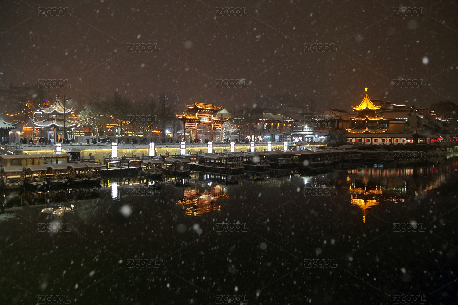 南京秦淮河古建筑暴風(fēng)雪夜景