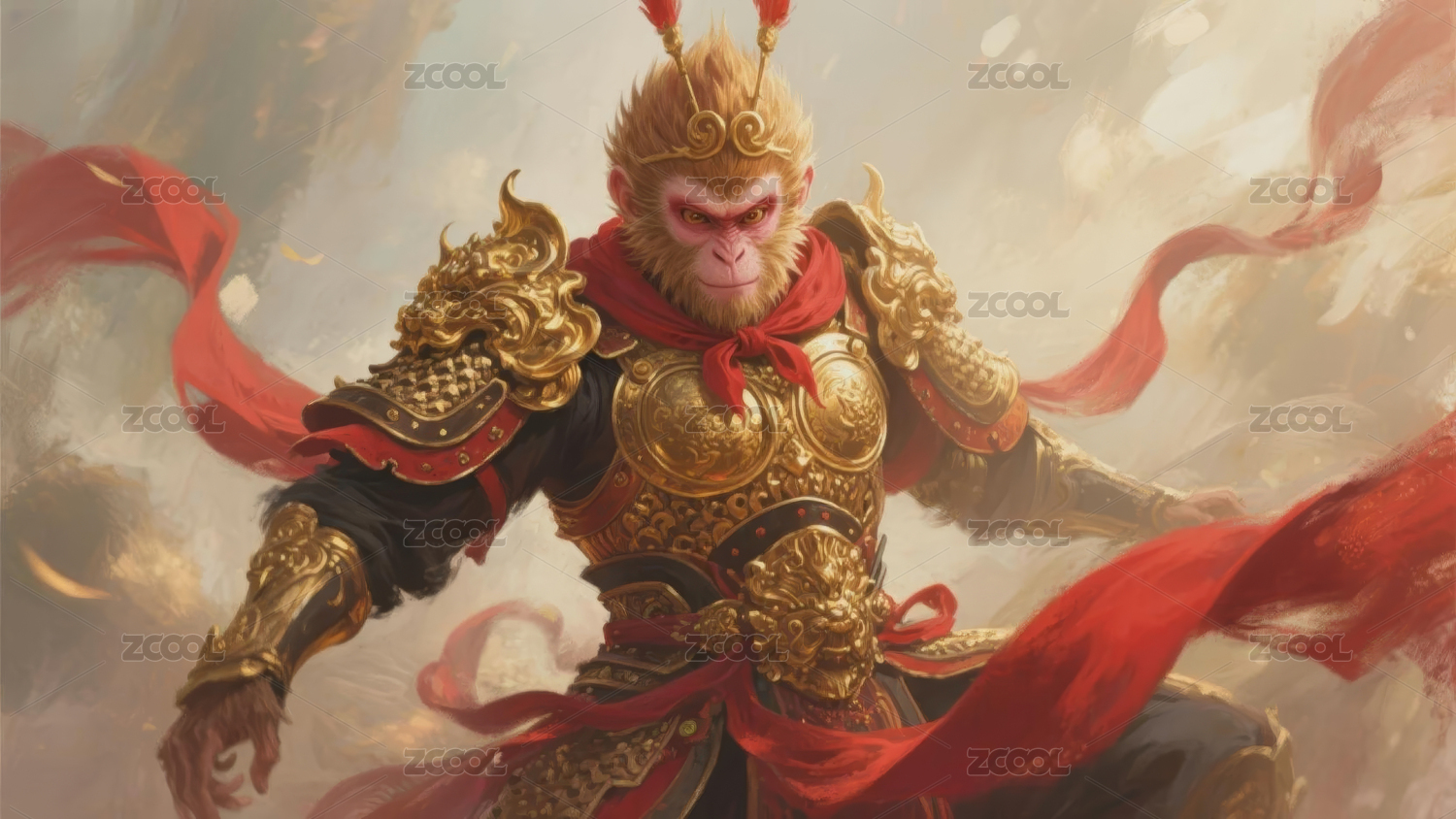 紅底金龍戰(zhàn)甲武士圖