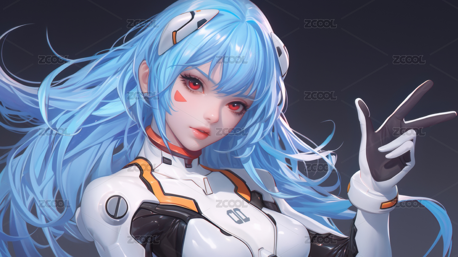身穿未來科技戰(zhàn)甲的藍(lán)發(fā)動漫少女