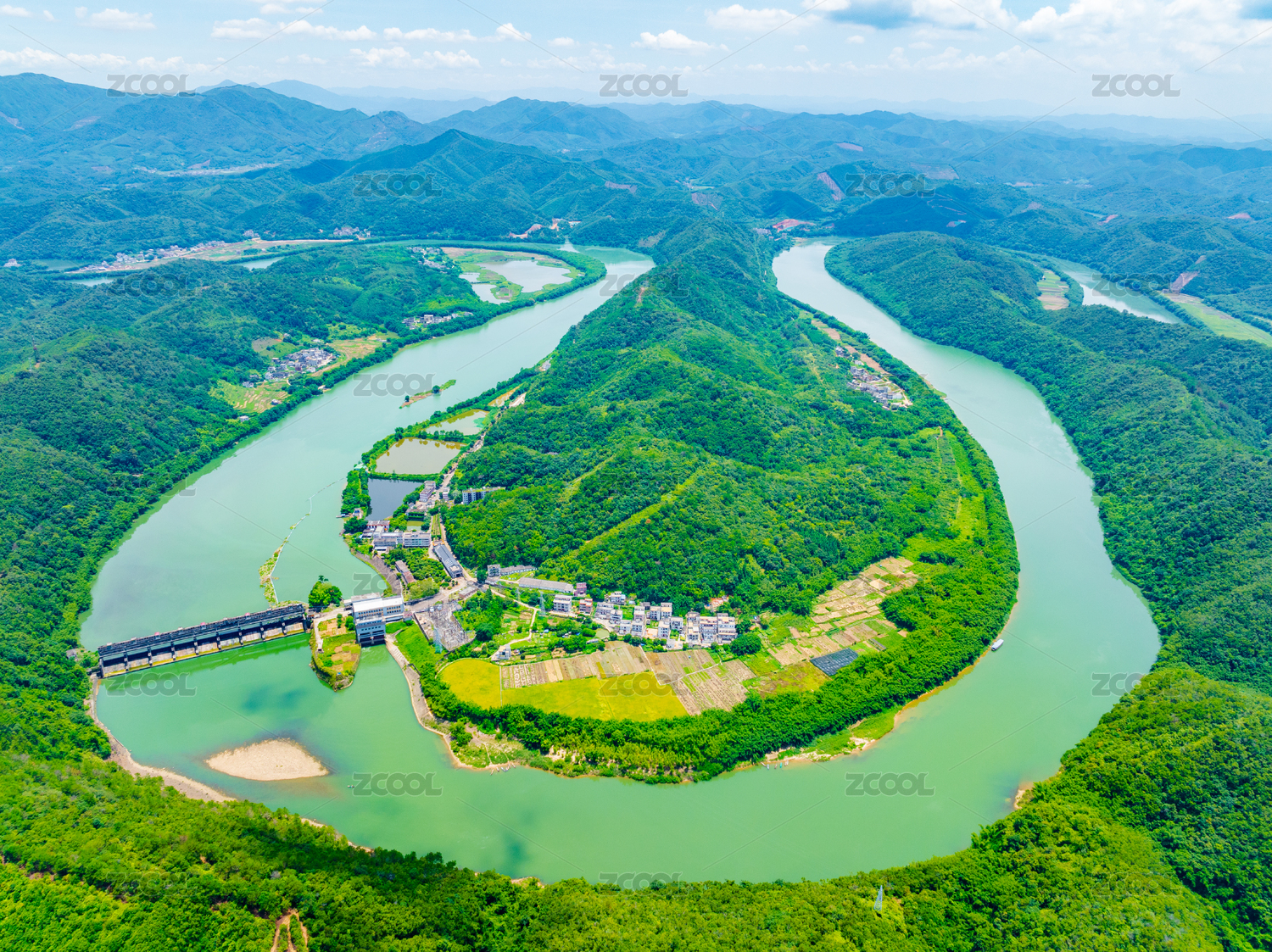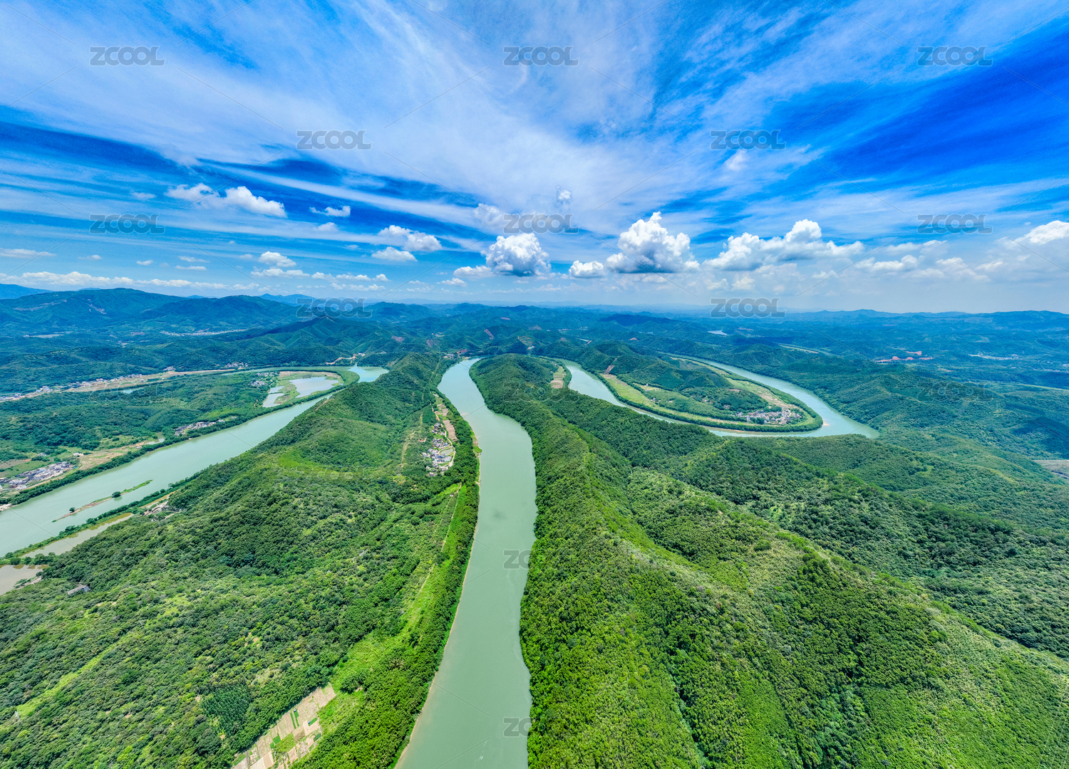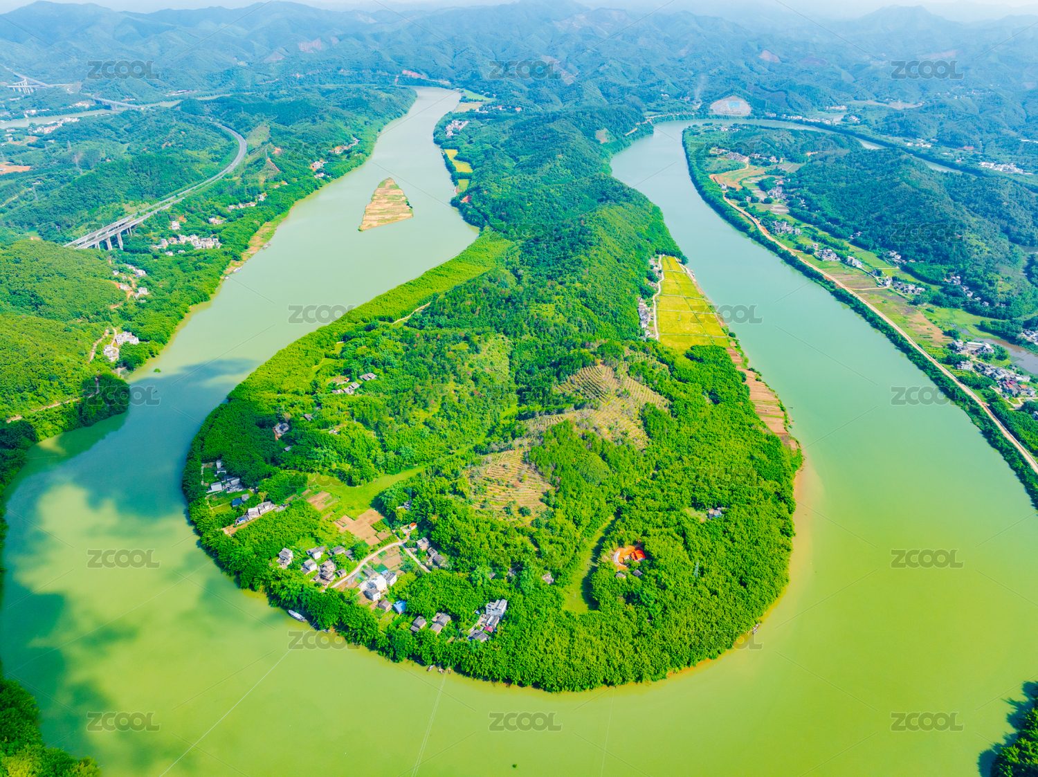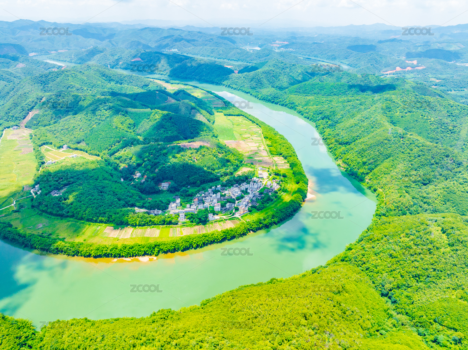 航拍廣東封開江口鎮(zhèn)賀江匯入西江