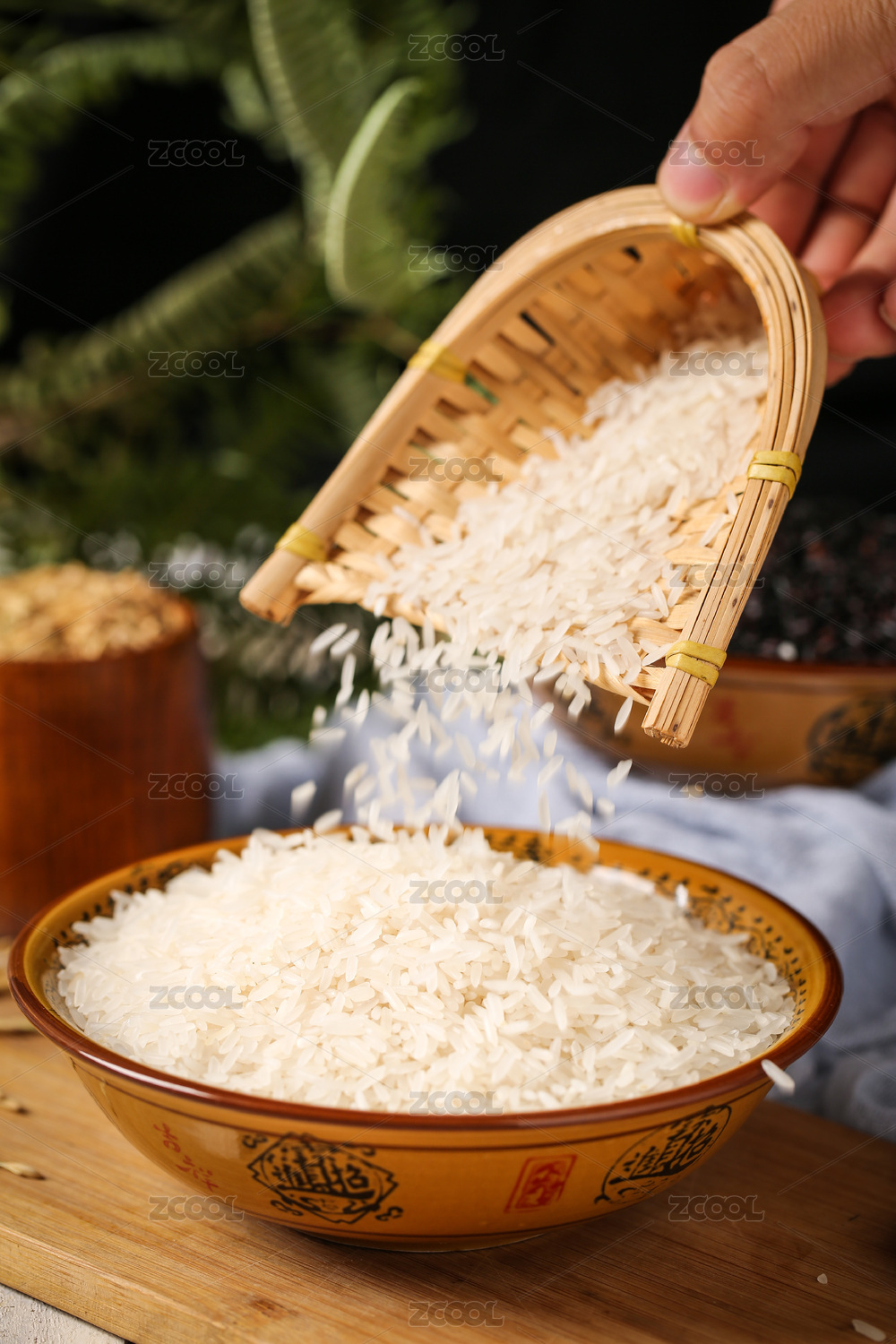 竹筐里的一堆大米