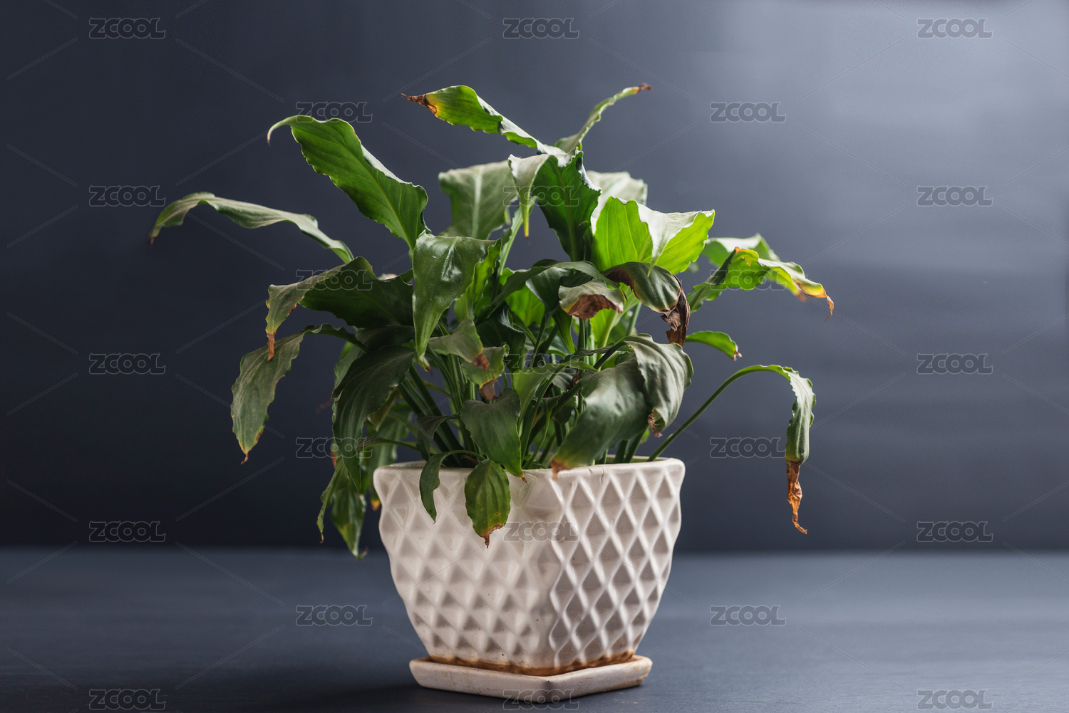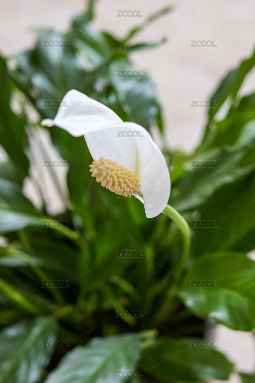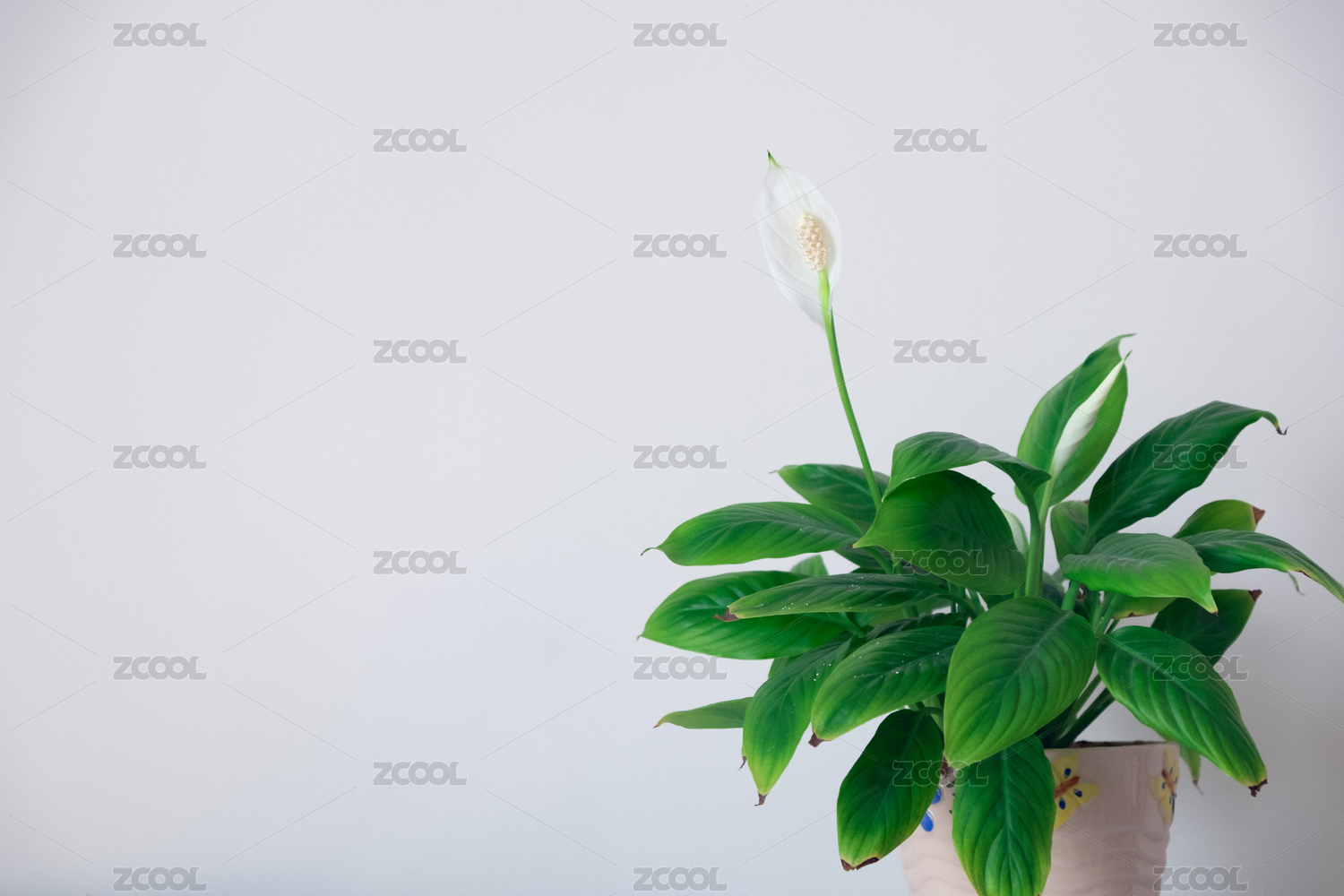 百葉窗前的沙發(fā)和擺放有白掌綠植和蕎麥茶的茶幾