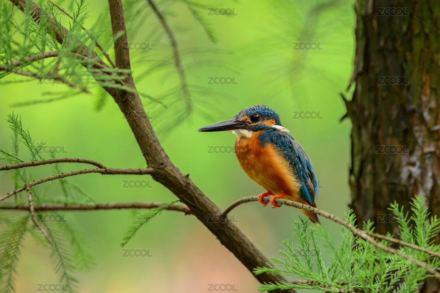 棲于溪澗,立于樹枝伺機(jī)捕食魚蝦的普通翠鳥