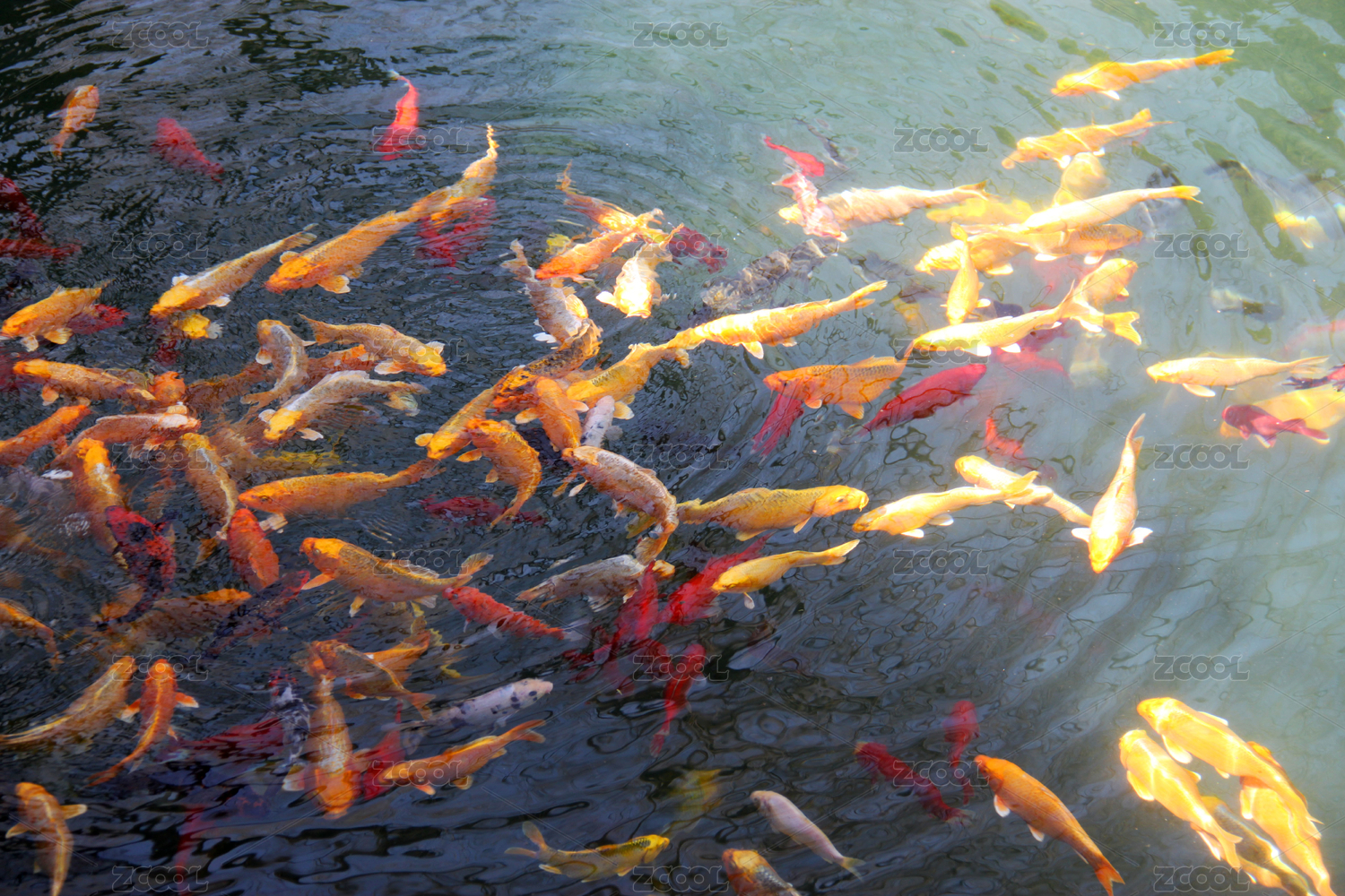 在池塘里游玩的觀賞性魚類錦鯉