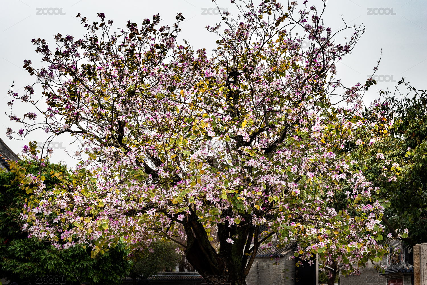 鮮艷奪目的羊蹄甲花盛開景觀圖