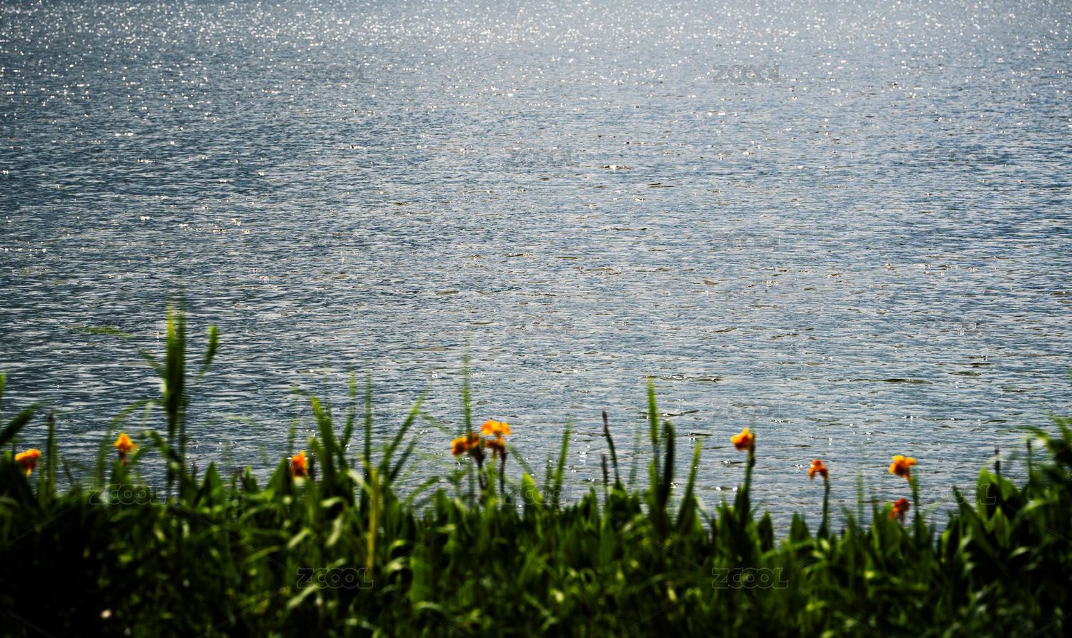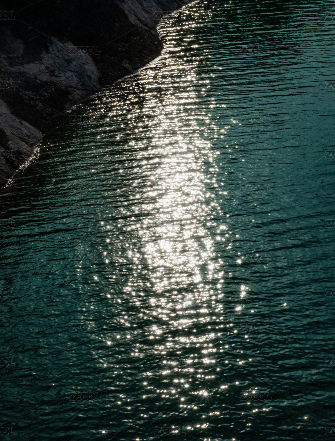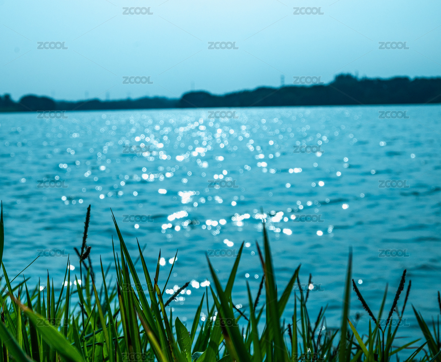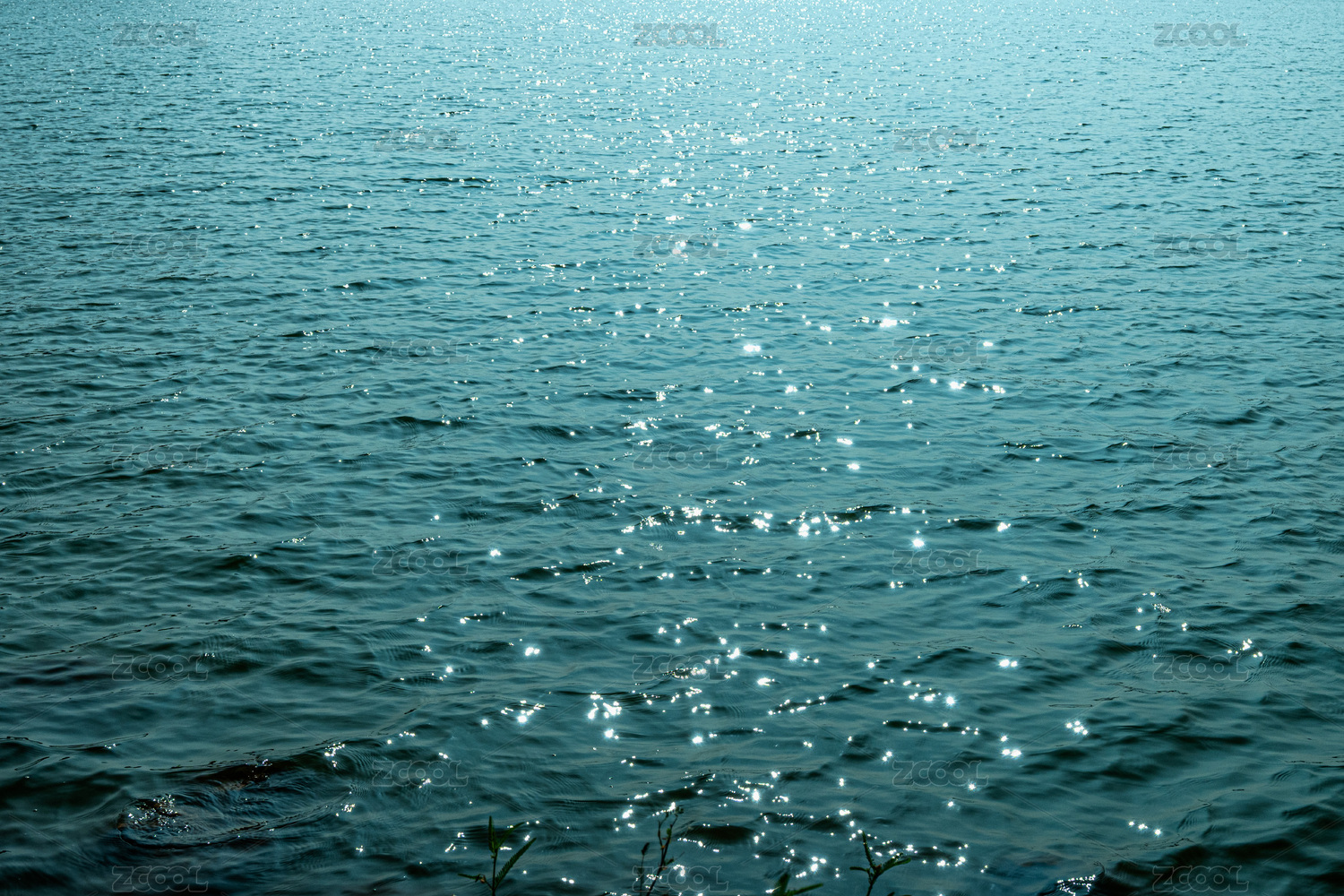 陽(yáng)光灑在波光粼粼的水面上的景象