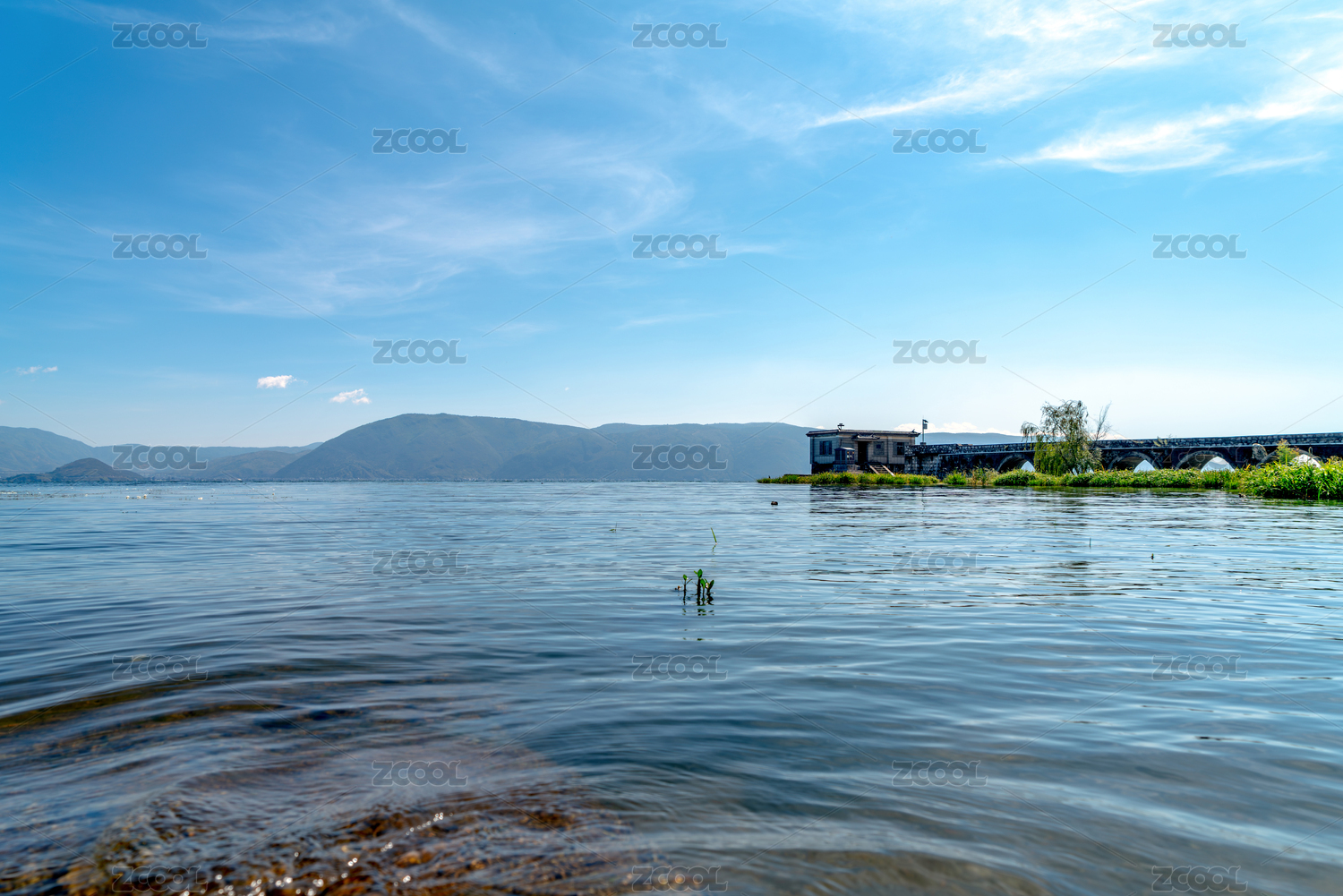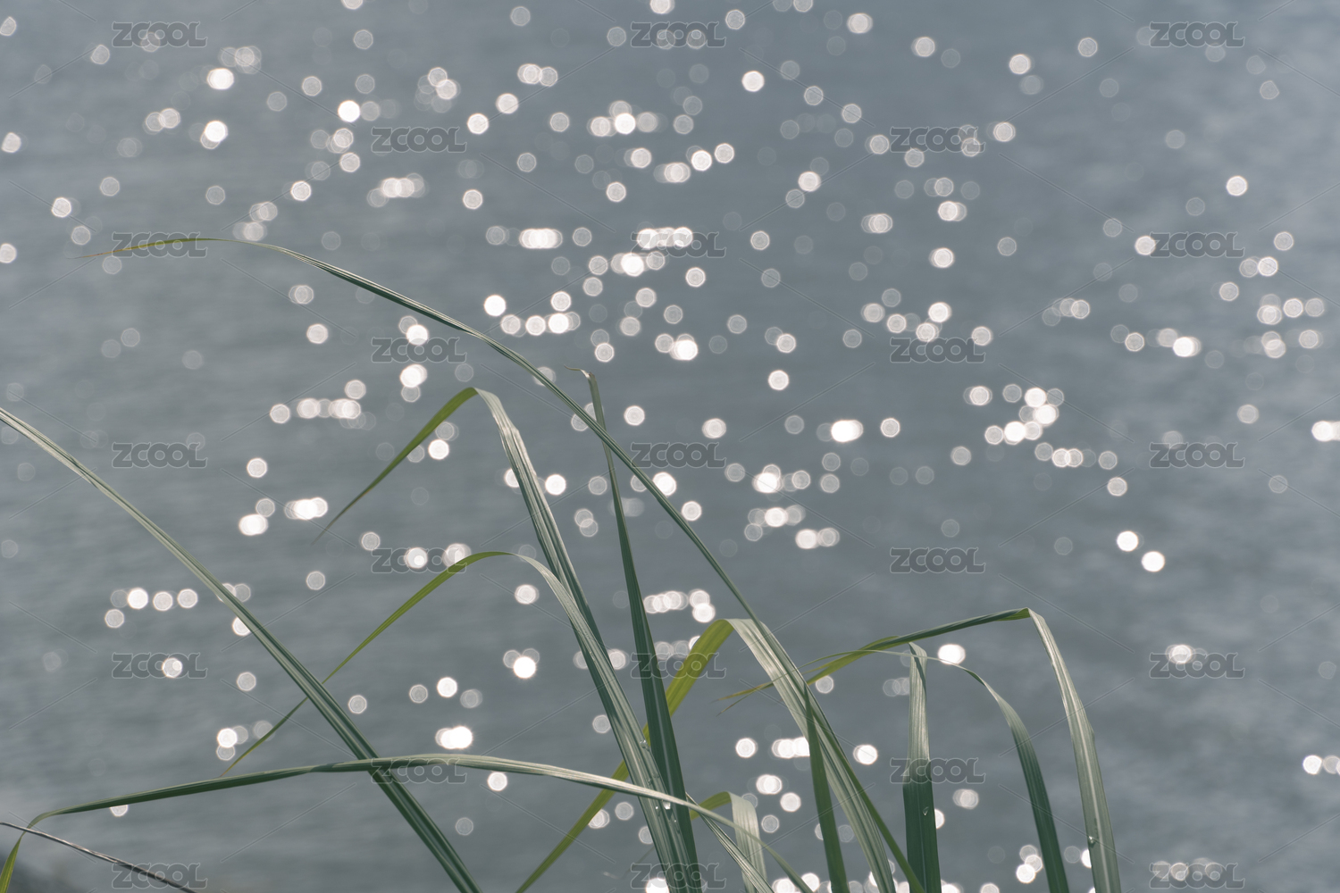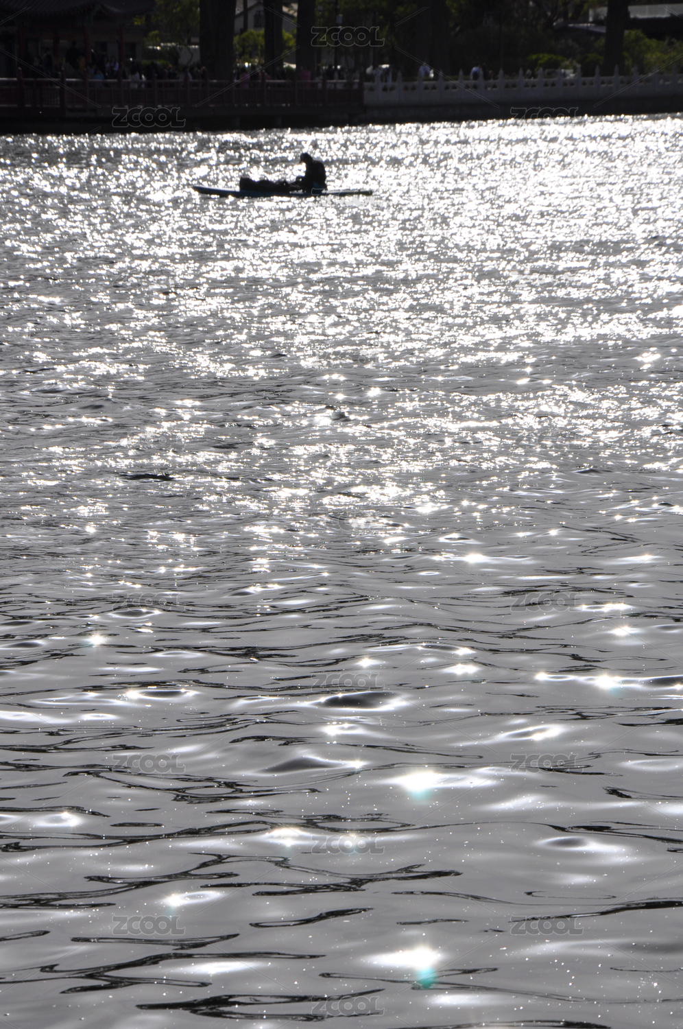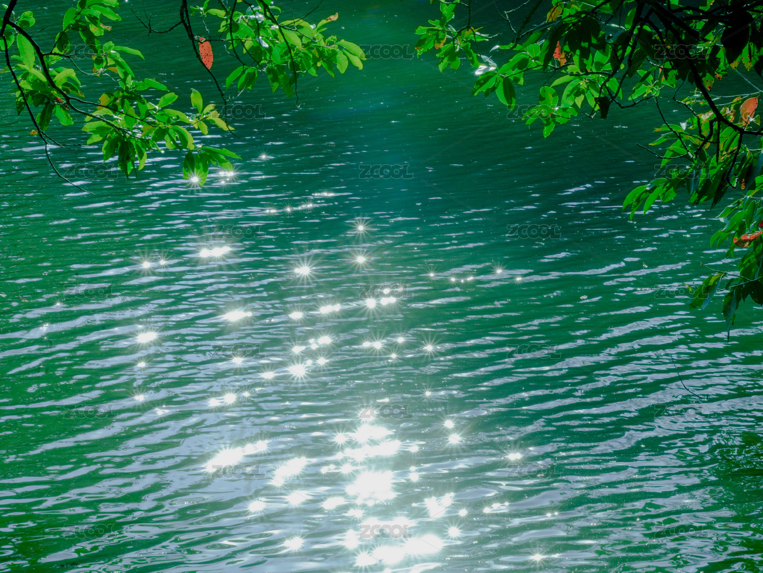陽(yáng)光灑在波光粼粼的水面上的景象